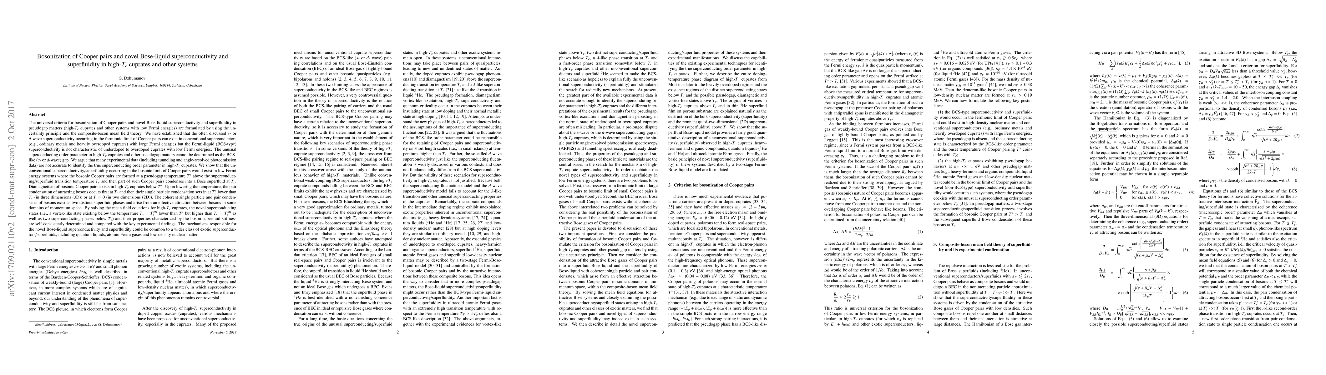 This paper formulates criteria for bosonization of Cooper pairs and proposes novel Bose-liquid superconductivity/superfluidity in high-$T_c$ cuprates, arguing against BCS-type superconductivity in these systems. It introduces unconventional superconductivity/superfluidity in bosonic Cooper pairs formed at pseudogap temperature T* and condenses into a Bose superfluid at $T_c$.