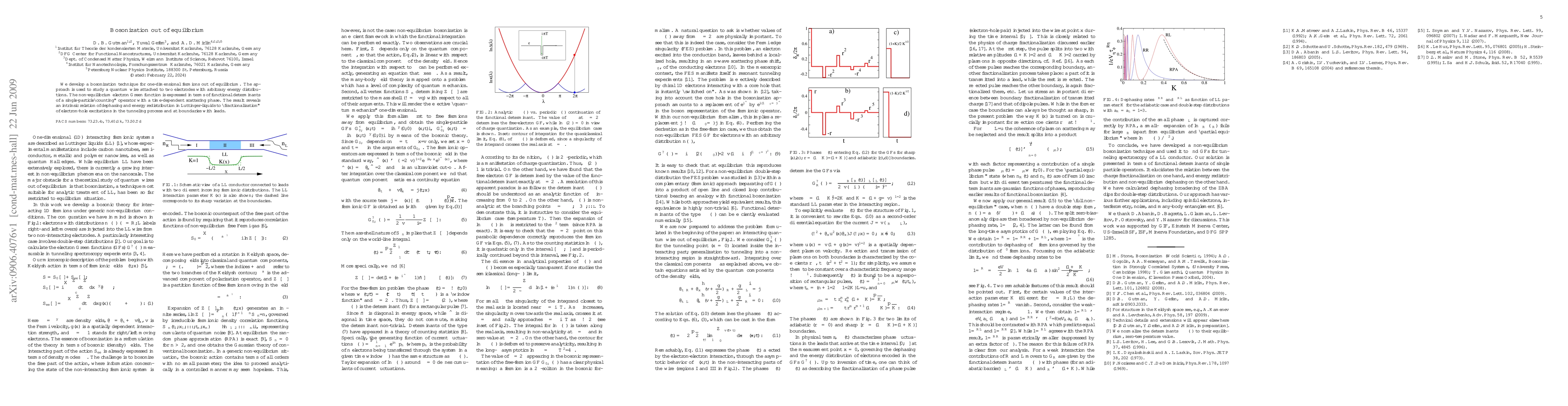 This paper introduces a bosonization technique for out-of-equilibrium one-dimensional fermions, focusing on a quantum wire connected to electrodes with varying energy distributions. It reveals a connection between dephasing, energy redistribution in Luttinger liquids, and the fractionalization of electron-hole excitations during tunneling and at the wire-lead boundaries.