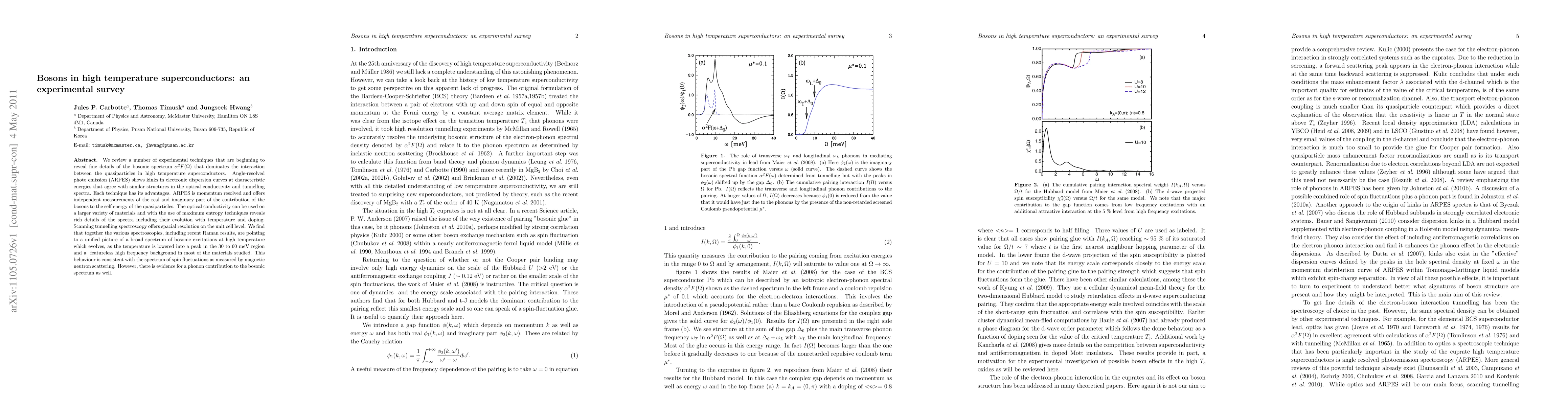 Experimental techniques like ARPES, optical conductivity, and scanning tunnelling spectroscopy reveal a unified picture of bosonic excitations in high temperature superconductors, with a peak in the 30-60 meV region and a featureless background, consistent with spin fluctuations but also suggesting phonon contributions.