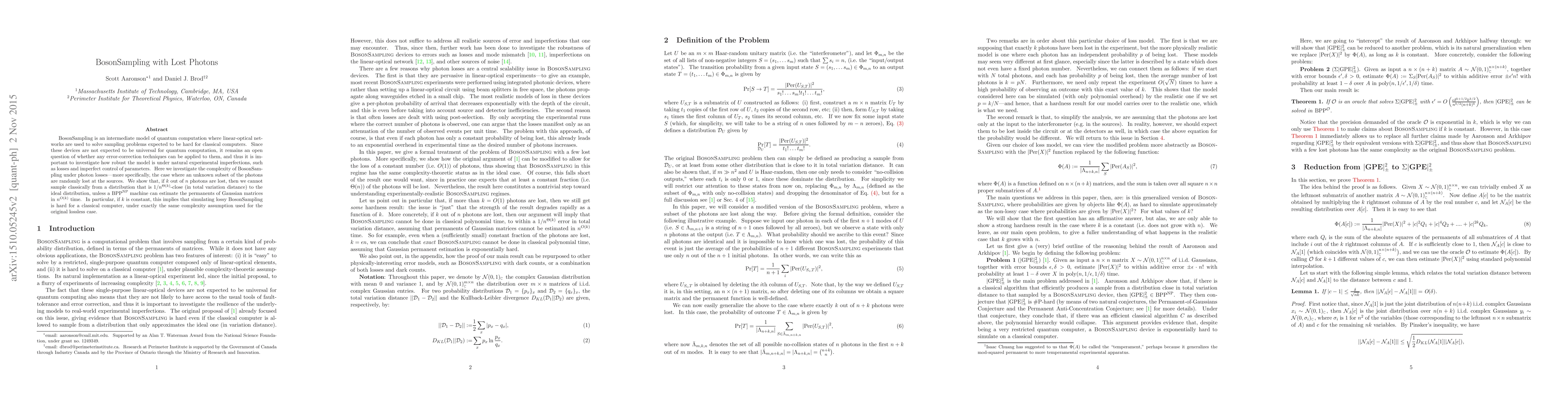 This paper investigates the robustness of BosonSampling, a quantum computation model, under photon losses. It demonstrates that simulating lossy BosonSampling is hard for classical computers, implying that photon losses significantly impact the model's efficiency.