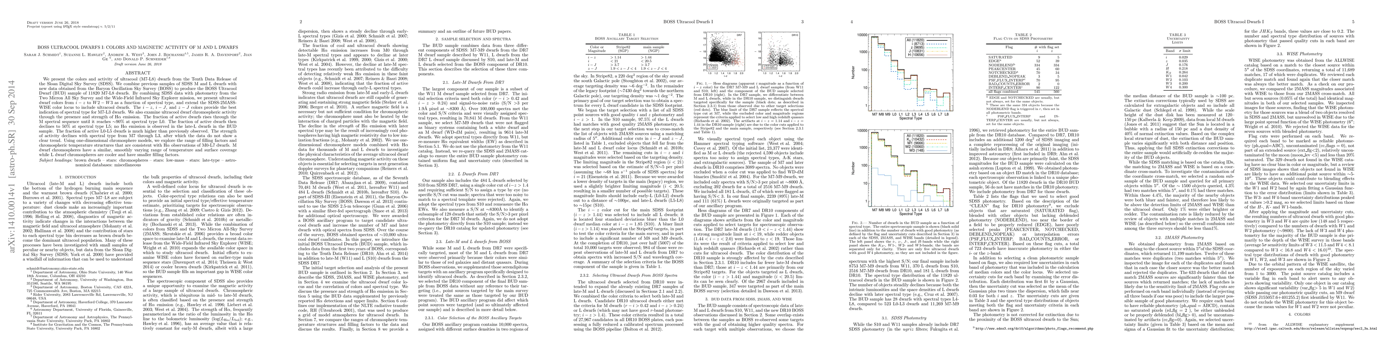 We present the colors and activity of ultracool (M7-L8) dwarfs from the Tenth Data Release of the Sloan Digital Sky Survey (SDSS). We combine previous samples of SDSS M and L dwarfs with new data obtained from the Baryon Oscillation Sky Survey (BOSS) to produce the BOSS Ultracool Dwarf (BUD) sample of 11820 M7-L8 dwarfs. By combining SDSS data with photometry from the Two Micron All Sky Survey and the Wide-Field Infrared Sky Explorer mission, we present ultracool dwarf colors from $i-z$ to $W2-W3$ as a function of spectral type, and extend the SDSS-2MASS-WISE color locus to include ultracool dwarfs. The $i-z$, $i-J$, and $z-J$ colors provide the best indication of spectral type for M7-L3 dwarfs. We also examine ultracool dwarf chromospheric activity through the presence and strength of H$\alpha$ emission. The fraction of active dwarfs rises through the M spectral sequence until it reaches $\sim$90% at spectral type L0. The fraction of active dwarfs then declines to 50% at spectral type L5; no H$\alpha$ emission is observed in the late-L dwarfs in the BUD sample. The fraction of active L0-L5 dwarfs is much higher than previously observed. The strength of activity declines with spectral type from M7 through L3, after which the data do not show a clear trend. Using one-dimensional chromosphere models, we explore the range of filling factors and chromospheric temperature structures that are consistent with H$\alpha$ observations of M0-L7 dwarfs. M dwarf chromospheres have a similar, smoothly varying range of temperature and surface coverage while L dwarf chromospheres are cooler and have smaller filling factors.
