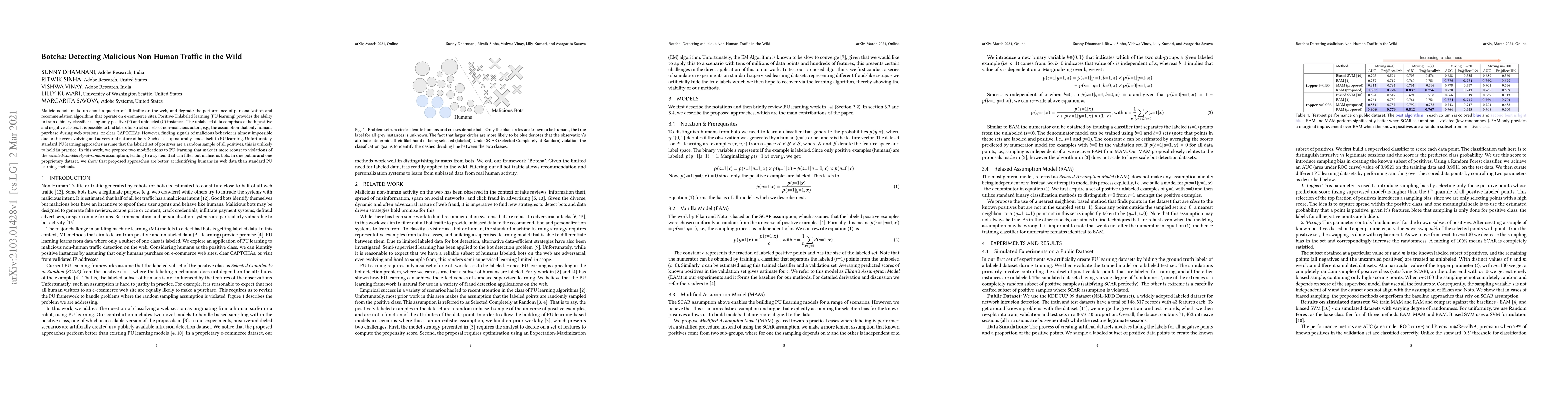 Researchers propose two modifications to positive-unlabeled learning to detect malicious non-human traffic in the wild, outperforming existing methods on identifying humans in web data.