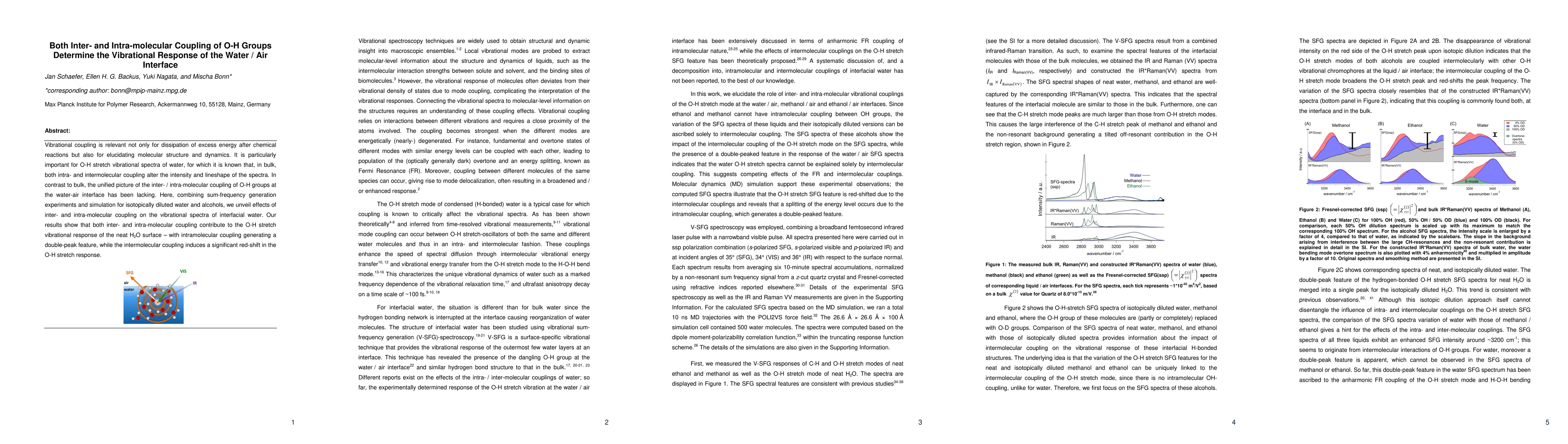This study reveals that both inter- and intramolecular coupling of OH groups significantly influence the vibrational spectra at the water/air interface, with intramolecular coupling creating a double-peak feature and intermolecular coupling causing a red shift in the OH stretch response.