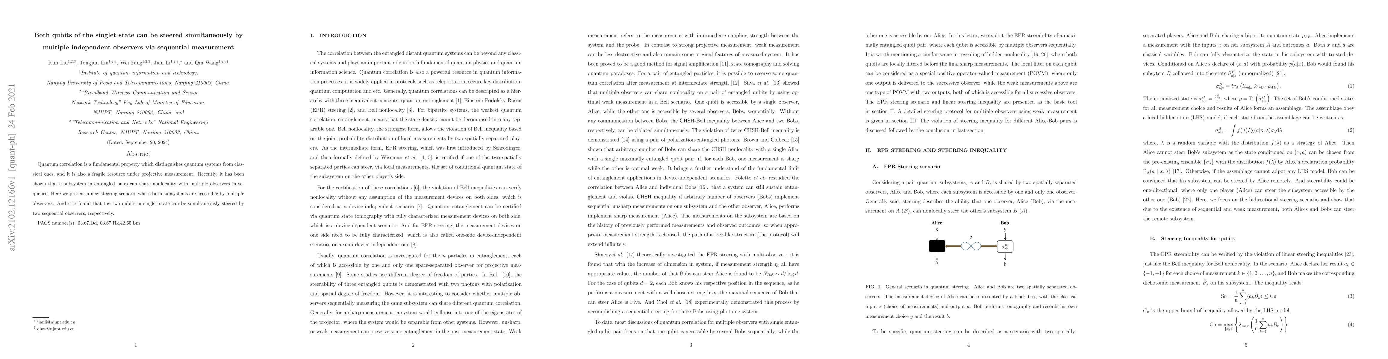 This paper explores a new quantum steering scenario where both qubits in a singlet state can be steered simultaneously by two sequential observers, highlighting the robustness of quantum correlations under non-projective measurements. This demonstrates a novel method for utilizing quantum entanglement in multi-observer settings.