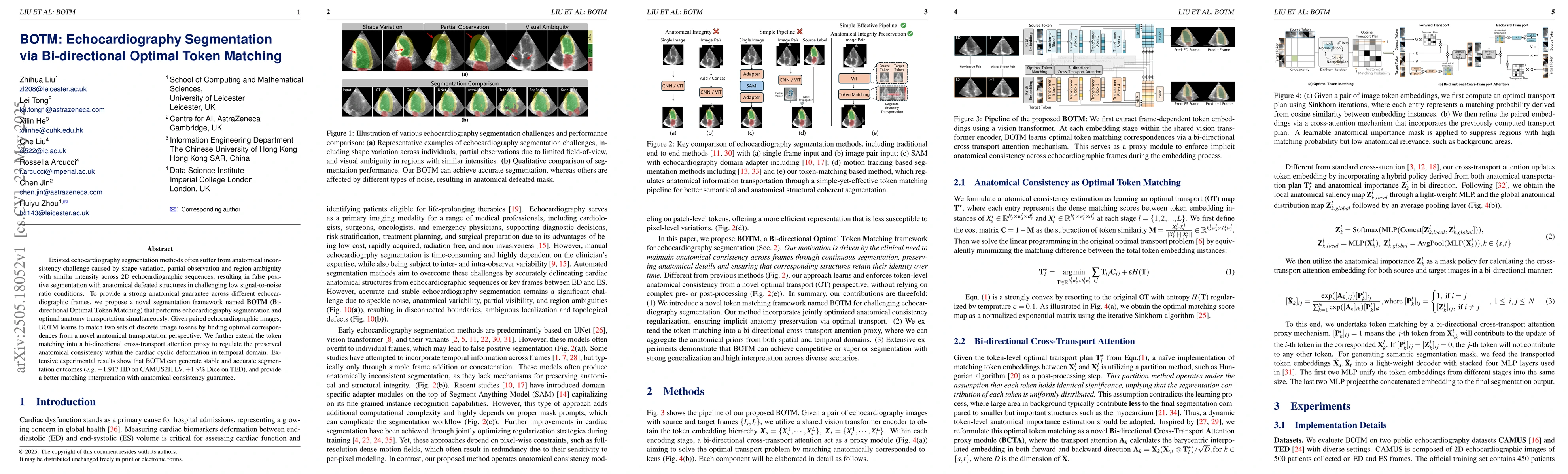 The research proposes BOTM, a novel token matching framework for echocardiography segmentation that ensures anatomical consistency across frames by formulating it as an optimal transport problem. It extends token matching into a bi-directional cross-transport attention proxy for preserving anatomical consistency within cardiac cyclic deformation in the temporal domain.