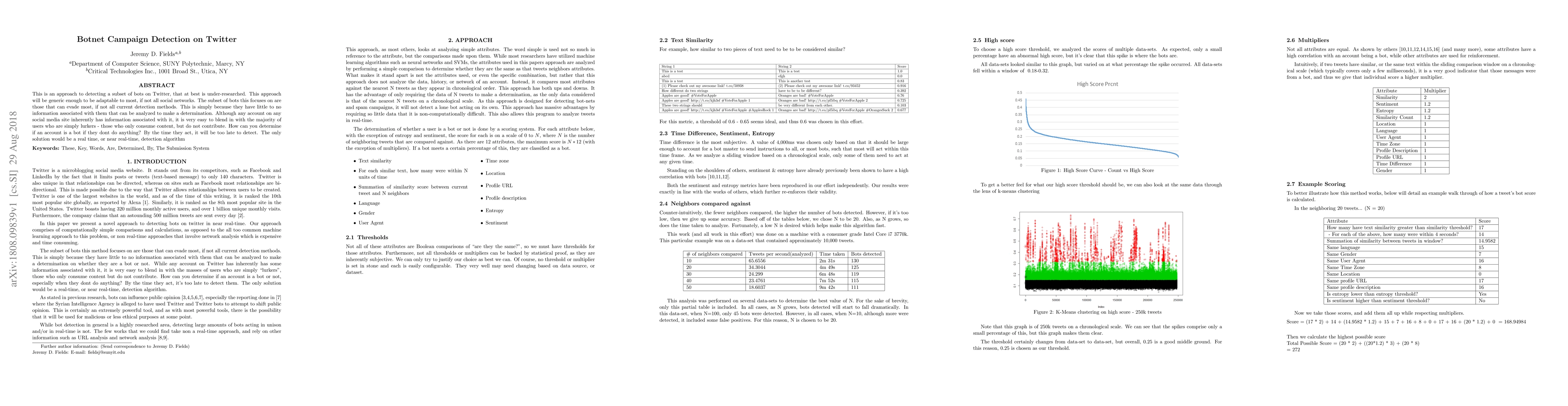 This is an approach to detecting a subset of bots on Twitter, that at best is under-researched. This approach will be generic enough to be adaptable to most, if not all social networks. The subset of bots this focuses on are those that can evade most, if not all current detection methods. This is simply because they have little to no information associated with them that can be analyzed to make a determination. Although any account on any social media site inherently has information associated with it, it is very easy to blend in with the majority of users who are simply "lurkers" - those who only consume content, but do not contribute. How can you determine if an account is a bot if they don't do anything? By the time they act, it will be too late to detect. The only solution would be a real time, or near real-time, detection algorithm.