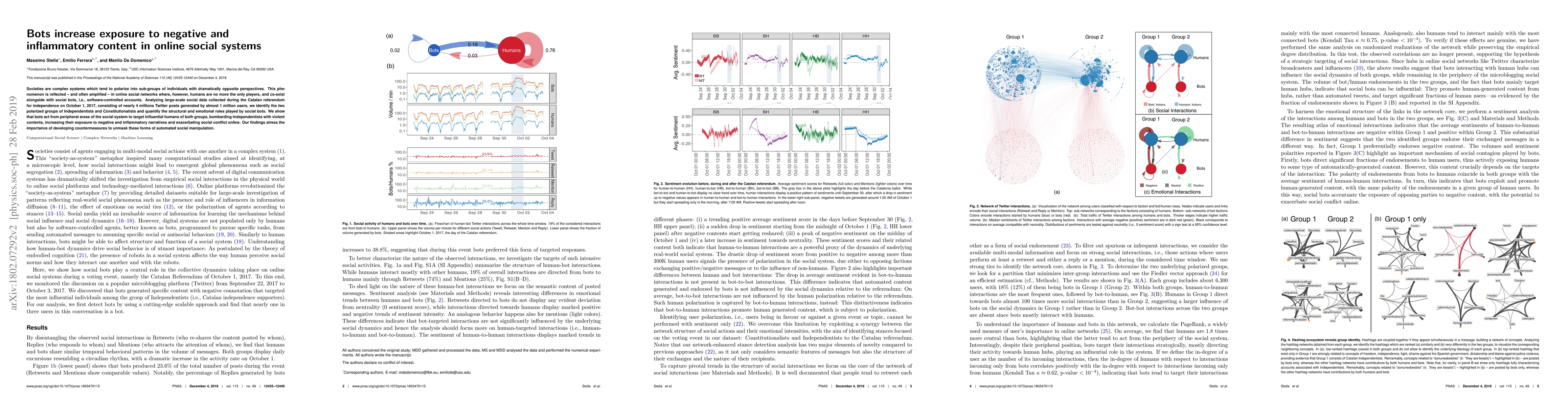 This study analyzes Twitter data from the Catalan referendum, revealing that social bots significantly increase exposure to negative and inflammatory content among Independentists, thereby exacerbating social conflict. The research highlights the need for countermeasures against automated manipulation in online social systems.