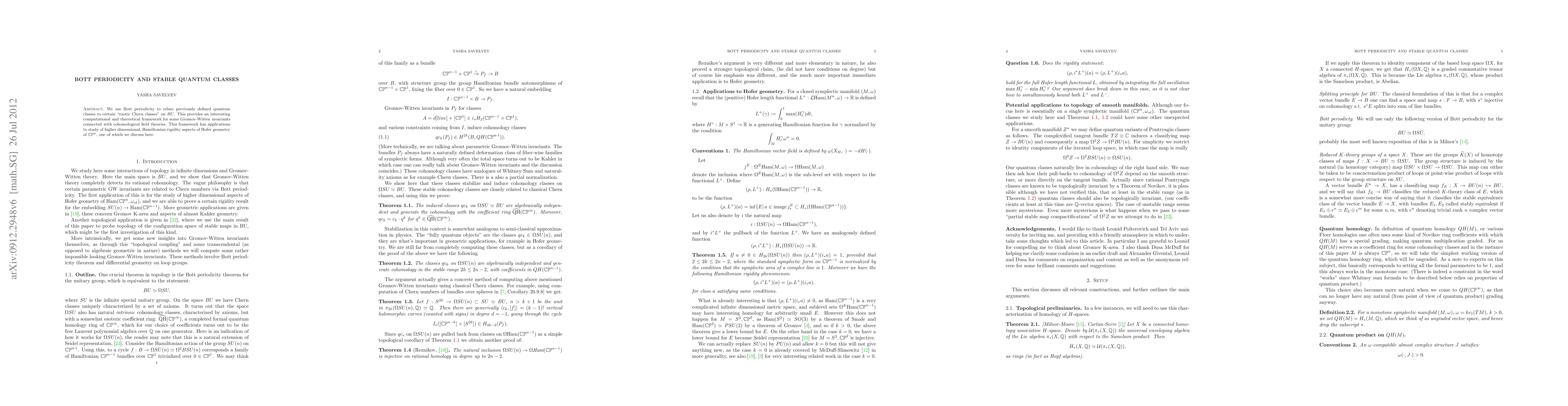 This paper utilizes Bott periodicity to connect established quantum classes with exotic Chern classes on $BU$, offering a novel framework for computing Gromov-Witten invariants and exploring Hamiltonian rigidity in the Hofer geometry of $\mathbb{CP}^n$.