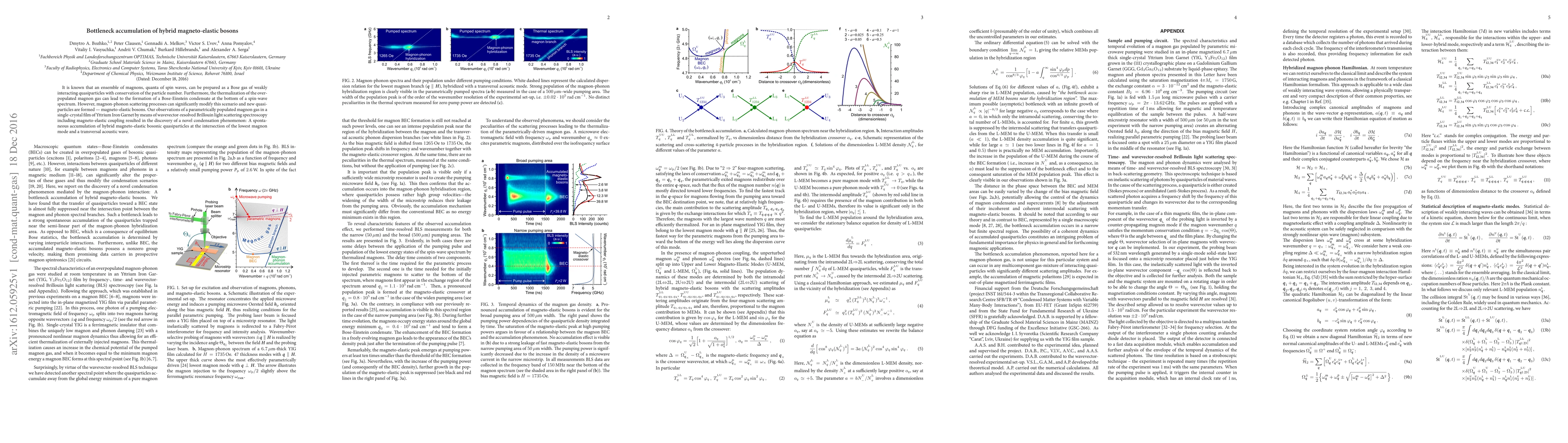 It is known that an ensemble of magnons, quanta of spin waves, can be prepared as a Bose gas of weakly interacting quasiparticles with conservation of the particle number. Furthermore, the thermalization of the overpopulated magnon gas can lead to the formation of a Bose-Einstein condensate at the bottom of a spin-wave spectrum. However, magnon-phonon scattering processes can significantly modify this scenario and new quasiparticles are formed - magneto-elastic bosons. Our observations of a parametrically populated magnon gas in a single-crystal film of Yttrium Iron Garnet by means of wavevector-resolved Brillouin light scattering spectroscopy including magneto-elastic coupling resulted in the discovery of a novel condensation phenomenon: A spontaneous accumulation of hybrid magneto-elastic bosonic quasiparticles at the intersection of the lowest magnon mode and a transversal acoustic wave.
