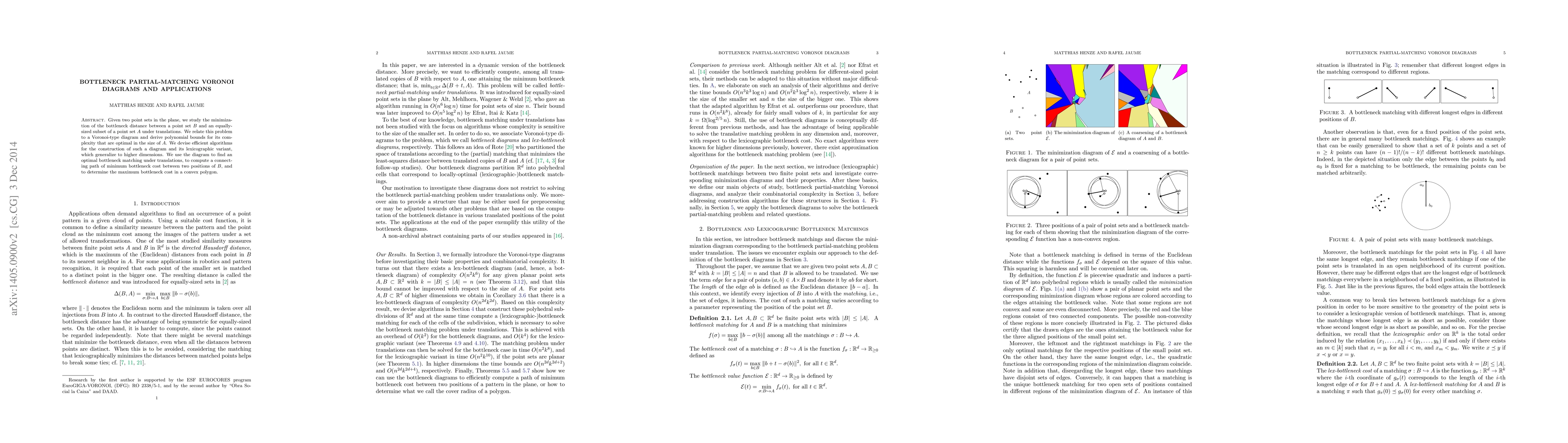 This research paper introduces a new diagram-based approach to optimize bottleneck distance between two point sets under translations, with applications in matching, pathfinding, and cost calculation.