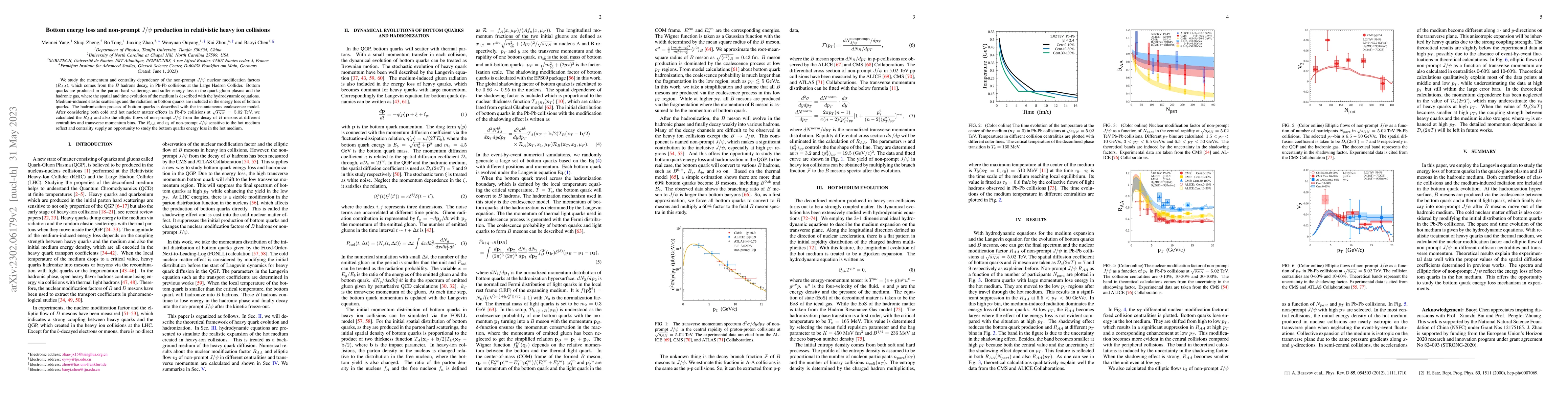 We study the momentum and centrality dependence of the non-prompt $J/\psi$ nuclear modification factors ($R_{AA}$), which comes from the $B$ hadrons decay, in Pb-Pb collisions at the Large Hadron Collider. Bottom quarks are produced in the parton hard scatterings and suffer energy loss in the quark-gluon plasma and the hadronic gas, where the spatial and time evolution of the medium is described with the hydrodynamic equations. Medium-induced elastic scatterings and the radiation in bottom quarks are included in the energy loss of bottom quarks. The hadronization process of bottom quarks is described with the instantaneous coalescence model. After considering both cold and hot nuclear matter effects in Pb-Pb collisions at $\sqrt{s_{NN}}=5.02$ TeV, we calculated the $R_{AA}$ and also the elliptic flows of non-prompt $J/\psi$ from the decay of $B$ mesons at different centralities and transverse momentum bins. The $R_{AA}$ and $v_2$ of non-prompt $J/\psi$ sensitive to the hot medium reflect and centrality supply an opportunity to study the bottom quarks energy loss in the hot medium.