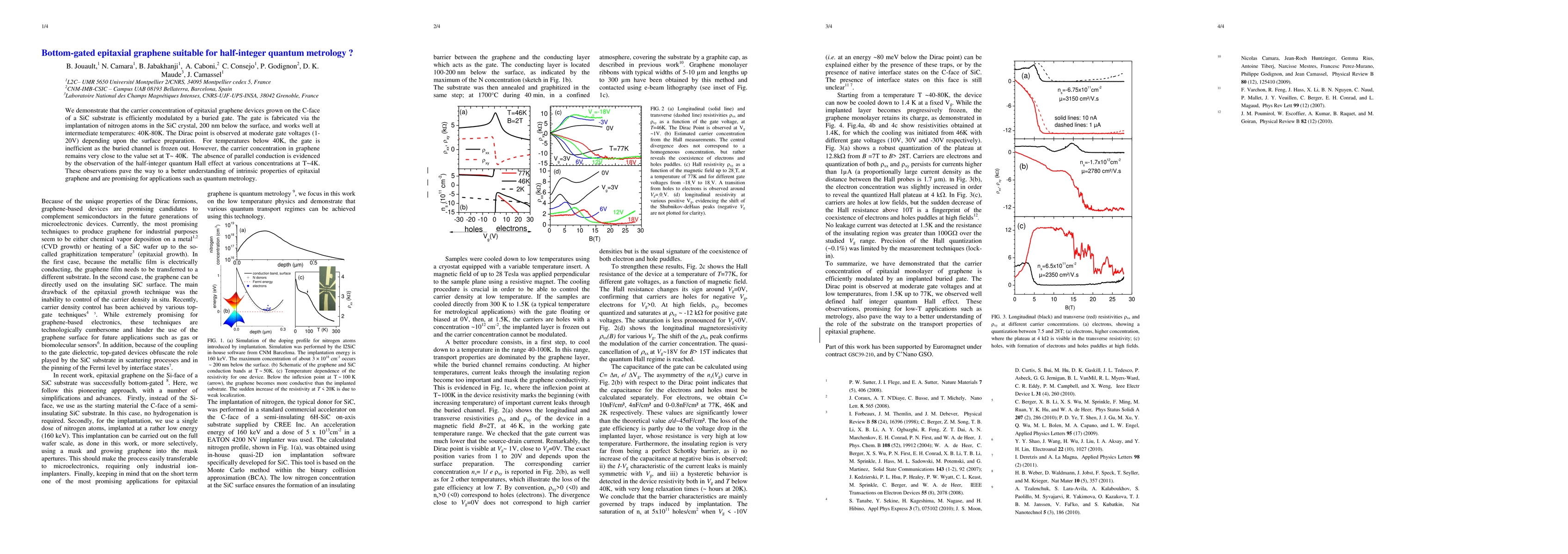 This research demonstrates efficient modulation of carrier concentration in epitaxial graphene via a buried nitrogen-gated gate, showcasing the half-integer quantum Hall effect at low temperatures, indicating potential for quantum metrology applications.