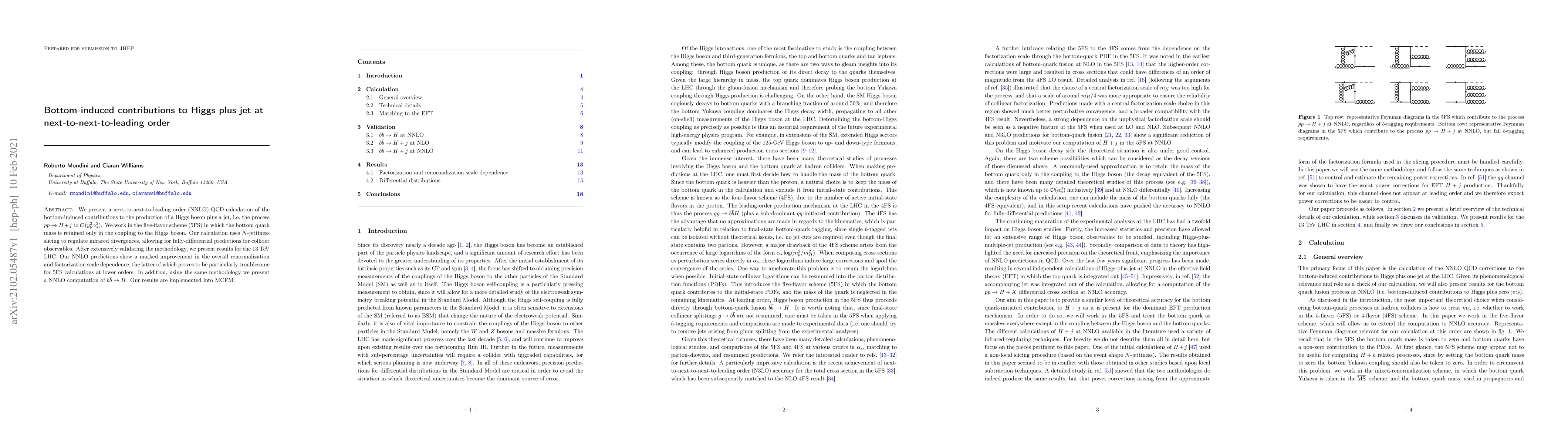 This paper presents a next-to-next-to-leading order (NNLO) QCD calculation for bottom-induced contributions to Higgs boson plus jet production, employing the five-flavor scheme and $N$-jettiness slicing to regulate infrared divergences. The authors validate their methodology and show improved scale dependence for the 13 TeV LHC, also extending their approach to compute NNLO for the $b\overline{b} \rightarrow H$ process.