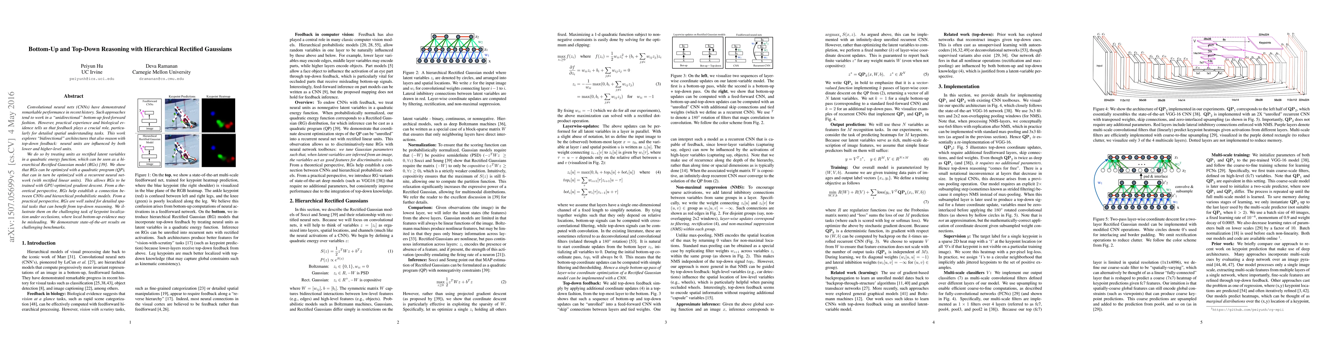This paper proposes a bidirectional neural network architecture using hierarchical Rectified Gaussians (RGs) to incorporate both bottom-up and top-down reasoning, achieving state-of-the-art results in keypoint localization under occlusions. RGs are optimized via a quadratic program and trained with GPU-optimized gradient descent, bridging CNNs and hierarchical probabilistic models.