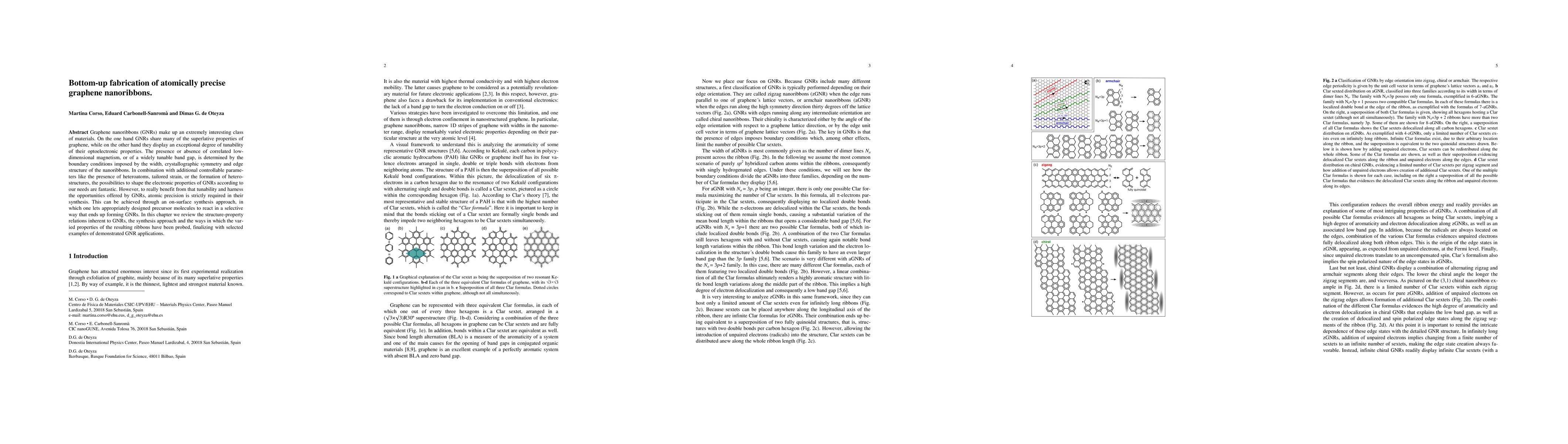 Graphene nanoribbons (GNRs) make up an extremely interesting class of materials. On the one hand GNRs share many of the superlative properties of graphene, while on the other hand they display an exceptional degree of tunability of their optoelectronic properties. The presence or absence of correlated low-dimensional magnetism, or of a widely tunable band gap, is determined by the boundary conditions imposed by the width, crystallographic symmetry and edge structure of the nanoribbons. In combination with additional controllable parame-ters like the presence of heteroatoms, tailored strain, or the formation of hetero-structures, the possibilities to shape the electronic properties of GNRs according to our needs are fantastic. However, to really benefit from that tunability and harness the opportunities offered by GNRs, atomic precision is strictly required in their synthesis. This can be achieved through an on-surface synthesis approach, in which one lets appropriately designed precursor molecules to react in a selective way that ends up forming GNRs. In this chapter we review the structure-property relations inherent to GNRs, the synthesis approach and the ways in which the var-ied properties of the resulting ribbons have been probed, finalizing with selected examples of demonstrated GNR applications.