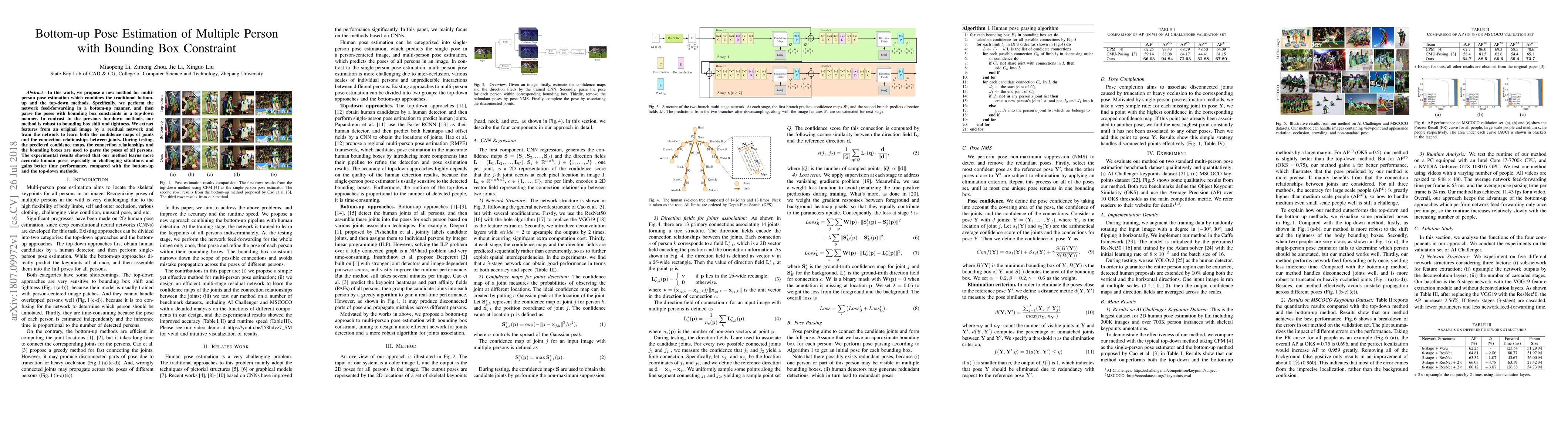 This paper proposes a hybrid bottom-up and top-down approach for multi-person pose estimation, utilizing bounding box constraints to enhance robustness. The method combines feature extraction from residual networks with confidence maps and joint connections, achieving more accurate and efficient pose estimation compared to traditional methods.