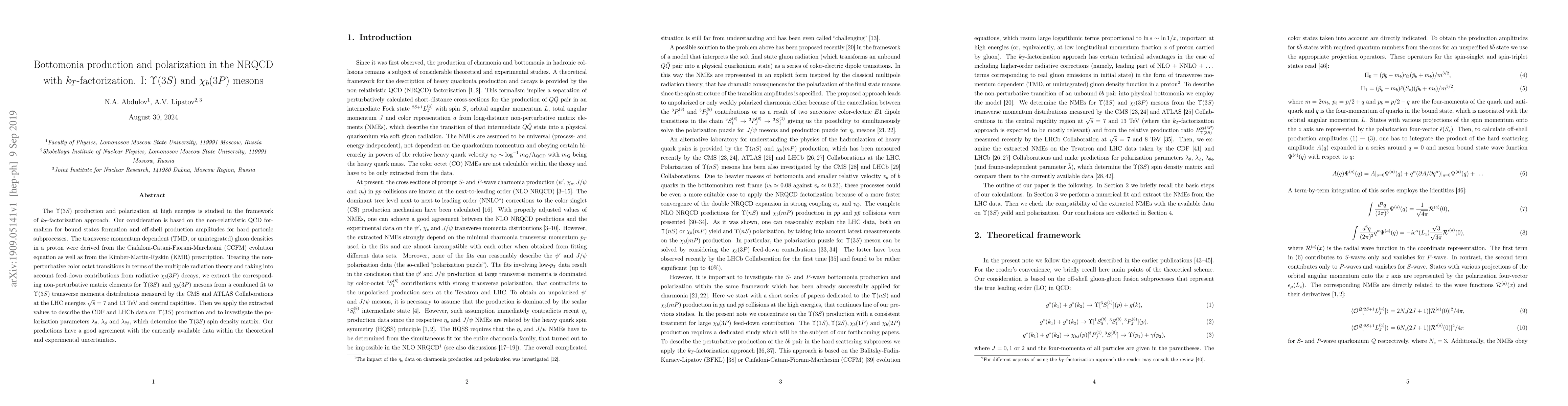 The $\Upsilon(3S)$ production and polarization at high energies is studied in the framework of $k_T$-factorization approach. Our consideration is based on the non-relativistic QCD formalism for bound states formation and off-shell production amplitudes for hard partonic subprocesses. The transverse momentum dependent (TMD, or unintegrated) gluon densities in a proton were derived from the Ciafaloni-Catani-Fiorani-Marchesini (CCFM) evolution equation as well as from the Kimber-Martin-Ryskin (KMR) prescription. Treating the non-perturbative color octet transitions in terms of the multipole radiation theory and taking into account feed-down contributions from radiative $\chi_b(3P)$ decays, we extract the corresponding non-perturbative matrix elements for $\Upsilon(3S)$ and $\chi_b(3P)$ mesons from a combined fit to $\Upsilon(3S)$ transverse momenta distributions measured by the CMS and ATLAS Collaborations at the~LHC energies $\sqrt s = 7$ and $13$~TeV and central rapidities. Then we apply the extracted values to describe the CDF and LHCb data on $\Upsilon(3S)$ production and to investigate the polarization parameters $\lambda_\theta$, $\lambda_\phi$ and $\lambda_{\theta\phi}$, %and $\tilde\lambda$, which determine the $\Upsilon(3S)$ spin density matrix. Our predictions have a good agreement with the currently available data within the theoretical and experimental uncertainties.