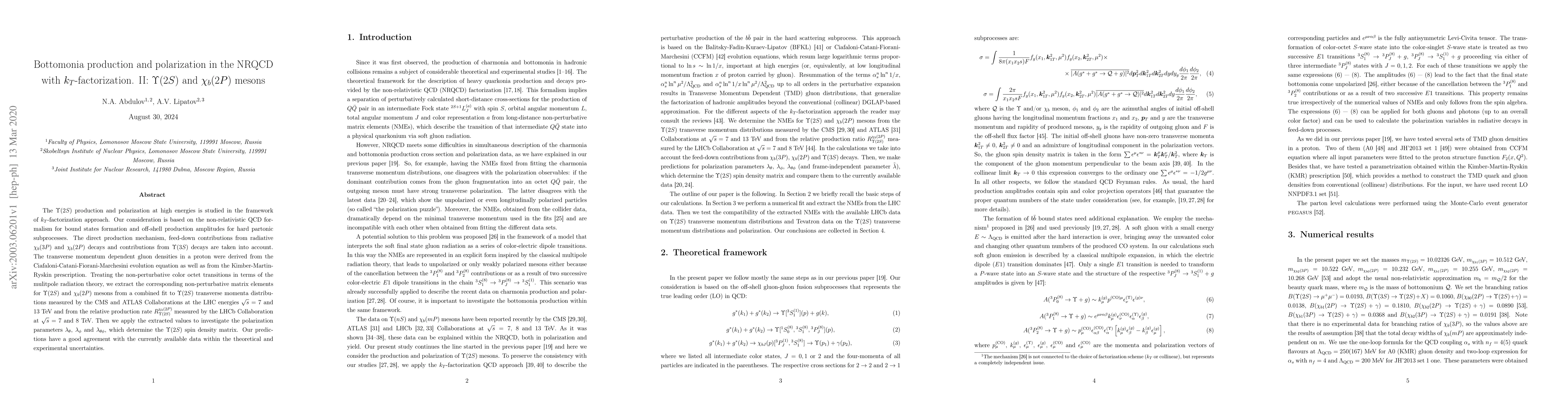 The $\Upsilon(2S)$ production and polarization at high energies is studied in the framework of $k_T$-factorization approach. Our consideration is based on the non-relativistic QCD formalism for bound states formation and off-shell production amplitudes for hard partonic subprocesses. The direct production mechanism, feed-down contributions from radiative $\chi_b(3P)$ and $\chi_b(2P)$ decays and contributions from $\Upsilon(3S)$ decays are taken into account. The transverse momentum dependent gluon densities in a proton were derived from the Ciafaloni-Catani-Fiorani-Marchesini evolution equation as well as from the Kimber-Martin-Ryskin prescription. Treating the non-perturbative color octet transitions in terms of the mulitpole radiation theory, we extract the corresponding non-perturbative matrix elements for $\Upsilon(2S)$ and $\chi_b(2P)$ mesons from a combined fit to $\Upsilon(2S)$ transverse momenta distributions measured by the CMS and ATLAS Collaborations at the LHC energies $\sqrt s = 7$ and $13$ TeV and from the relative production rate $R^{\chi_b(2P)}_{\Upsilon(2S)}$ measured by the LHCb Collaboration at $\sqrt s = 7$ and $8$ TeV. Then we apply the extracted values to investigate the polarization parameters $\lambda_\theta$, $\lambda_\phi$ and $\lambda_{\theta\phi}$, which determine the $\Upsilon(2S)$ spin density matrix. Our predictions have a good agreement with the currently available data within the theoretical and experimental uncertainties.