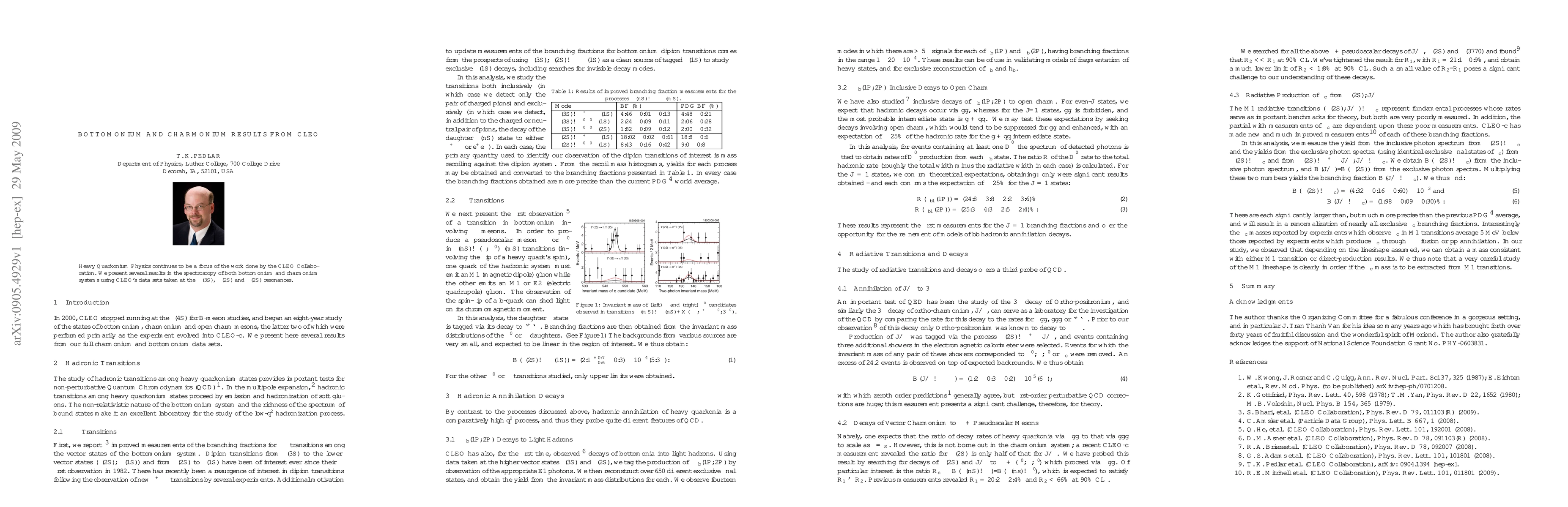 Summary: The CLEO Collaboration reports new spectroscopic findings on both bottomonium and charmonium systems derived from data collected at specific resonances, enhancing our understanding of heavy quarkonium physics.