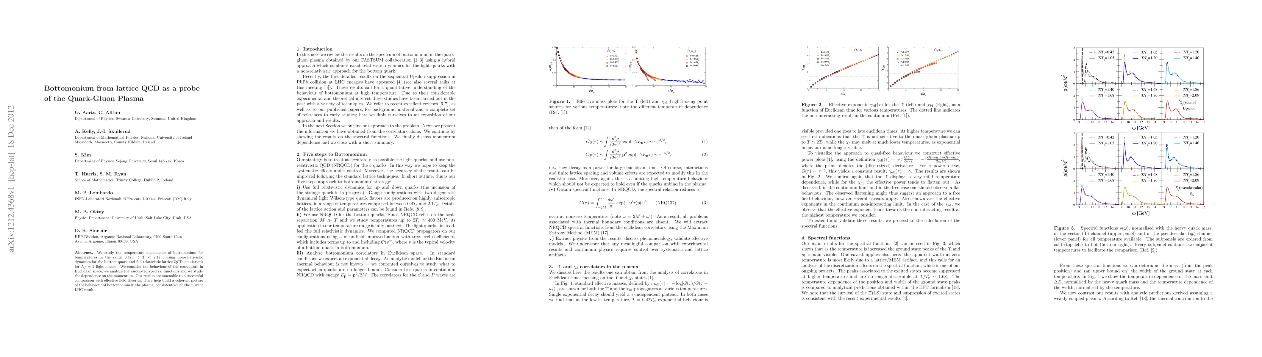 This paper investigates the temperature dependence of bottomonium within the range 0.4 Tc < T < 2.1 Tc using lattice QCD simulations, revealing its behavior in the Quark-Gluon Plasma. The findings provide insights into bottomonium's spectral functions and momentum dependence, aligning with effective field theories and current LHC results.