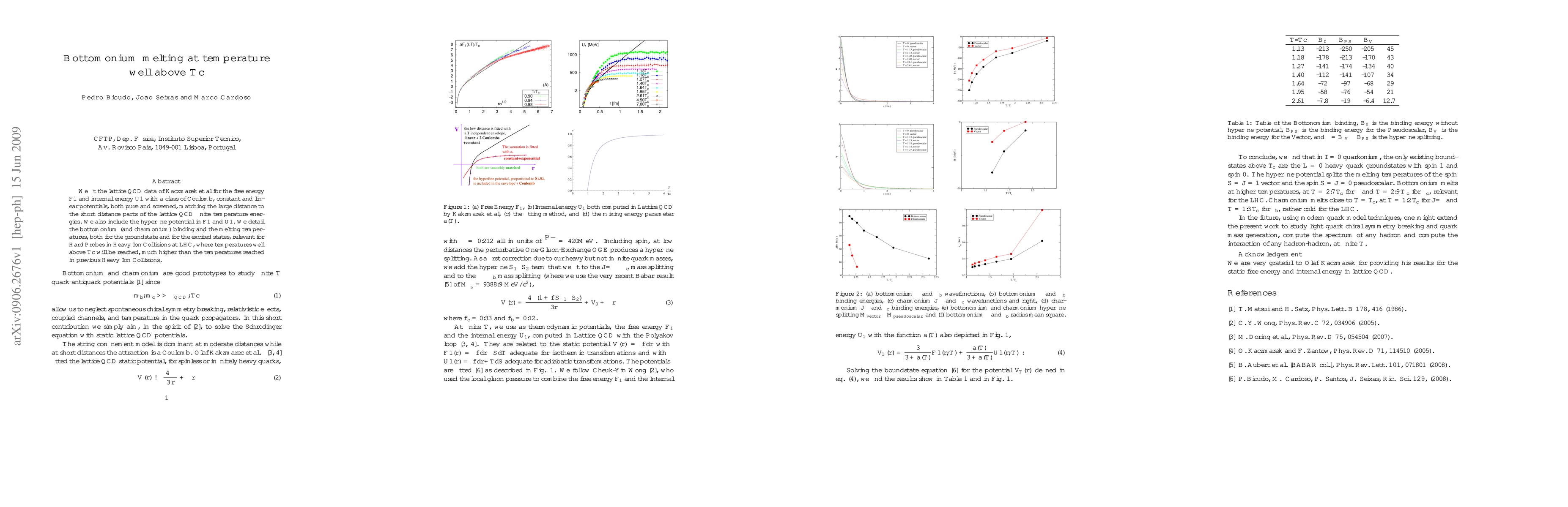 We fit the lattice QCD data of Kaczmarek et al for the free energy F1 and internal energy U1 with a class of Coulomb, constant and linear potentials, both pure and screened, matching the large distance to the short distance parts of the lattice QCD finite temperature energies. We also include the hyperfine potential in F1 and U1. We detail the bottomonium (and charmonium) binding and the melting temperatures, both for the groundstate and for the excited states, relevant for Hard Probes in Heavy Ion Collisions at LHC, where temperatures well above Tc will be reached, much higher than the temperatures reached in previous Heavy Ion Collisions.