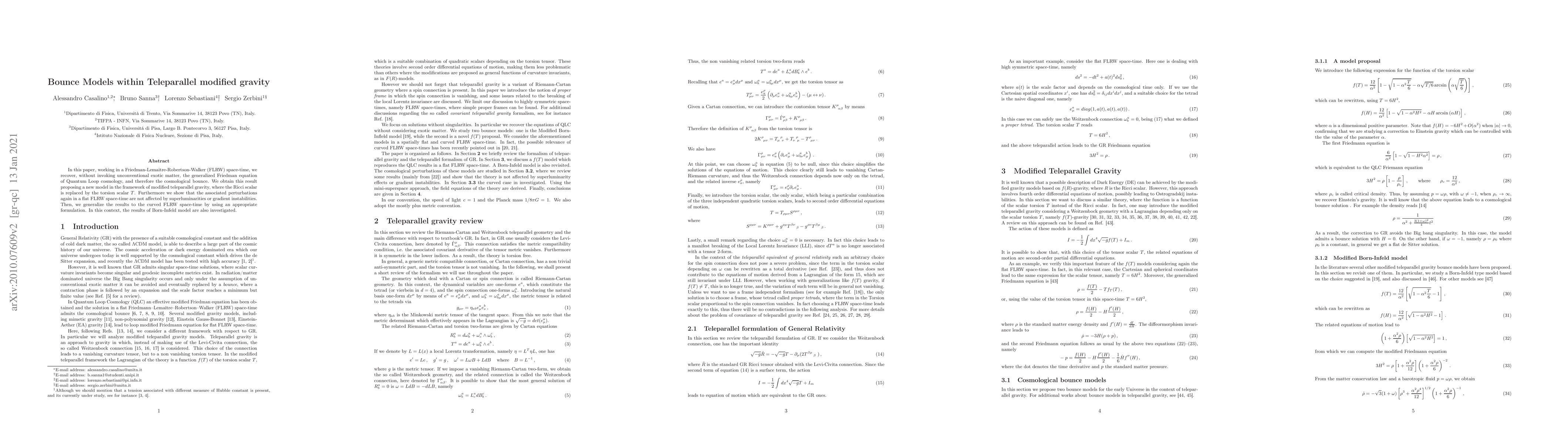This paper explores the cosmological bounce in the context of modified teleparallel gravity $f(T)$-model within a Friedman-Lemaitre-Robertson-Walker (FLRW) framework, achieving the bounce without exotic matter. It also investigates perturbations and generalizes results to curved FLRW space-time, comparing with Born-Infeld model outcomes.