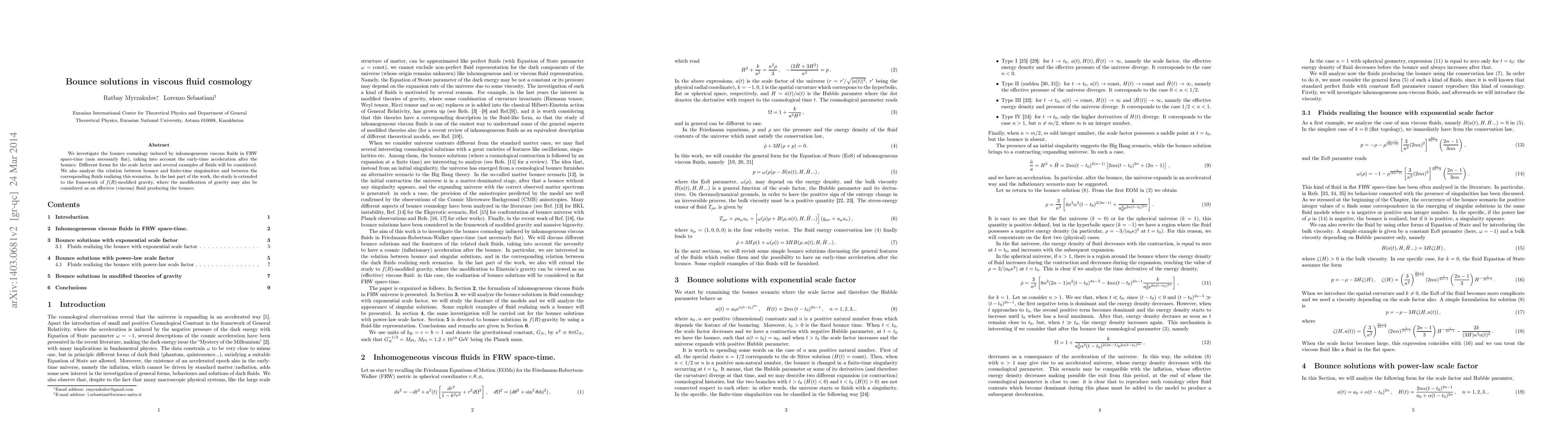 We investigate the bounce cosmology induced by inhomogeneous viscous fluids in FRW space-time (non necessarly flat), taking into account the early-time acceleration after the bounce. Different forms for the scale factor and several examples of fluids will be considered. We also analyze the relation between bounce and finite-time singularities and between the corresponding fluids realizing this scenarios. In the last part of the work, the study is extended to the framework of $f(R)$-modified gravity, where the modification of gravity may also be considered as an effective (viscous) fluid producing the bounce.