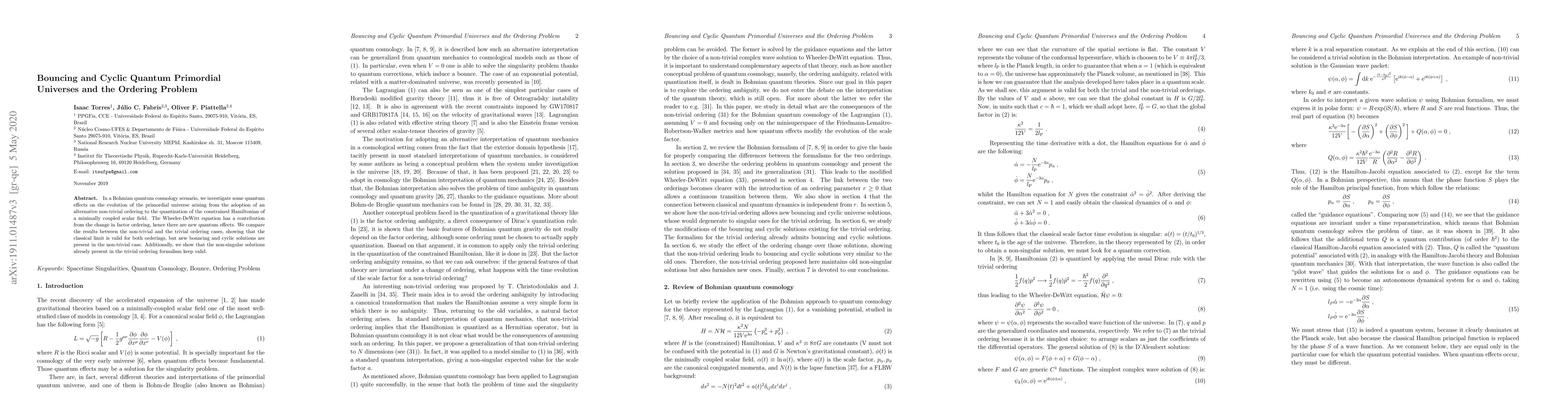 Researchers investigate a new ordering in quantum cosmology, finding that it leads to bouncing and cyclic universes with unique solutions, while maintaining classical limits.