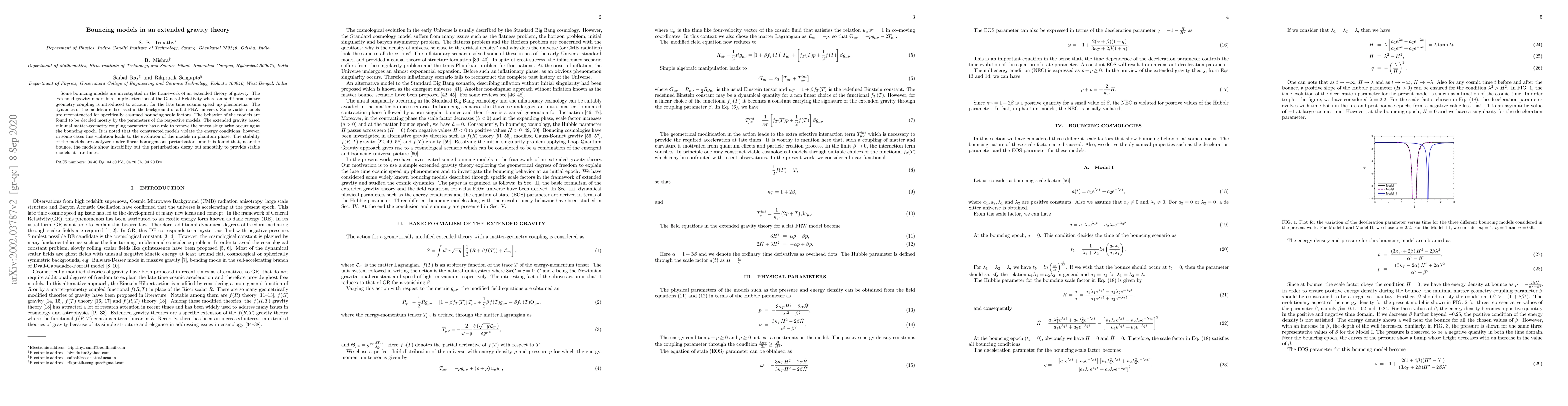 Researchers investigate bouncing models in an extended gravity theory that accounts for late-time cosmic speed-up phenomena, finding that model behavior is largely determined by parameters, which can lead to unstable phases but ultimately result in stable models at late times.