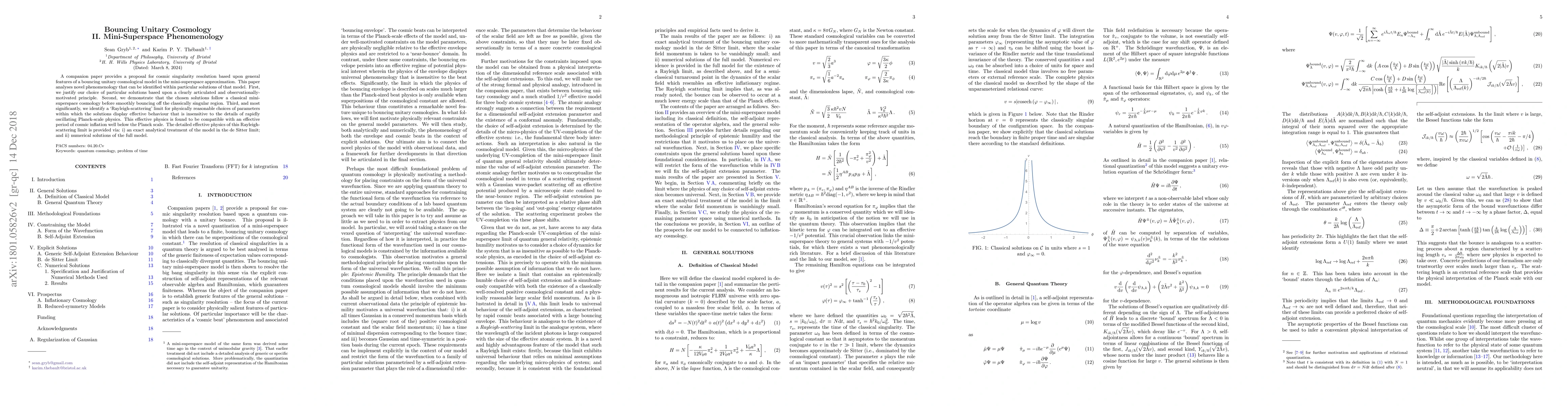 This paper explores the phenomenology of a bouncing unitary cosmology model, justifying specific solutions based on observational principles. It demonstrates that these solutions exhibit classical mini-superspace behavior before a smooth bounce, and identifies a 'Rayleigh-scattering' limit compatible with cosmic inflation well below the Planck scale.