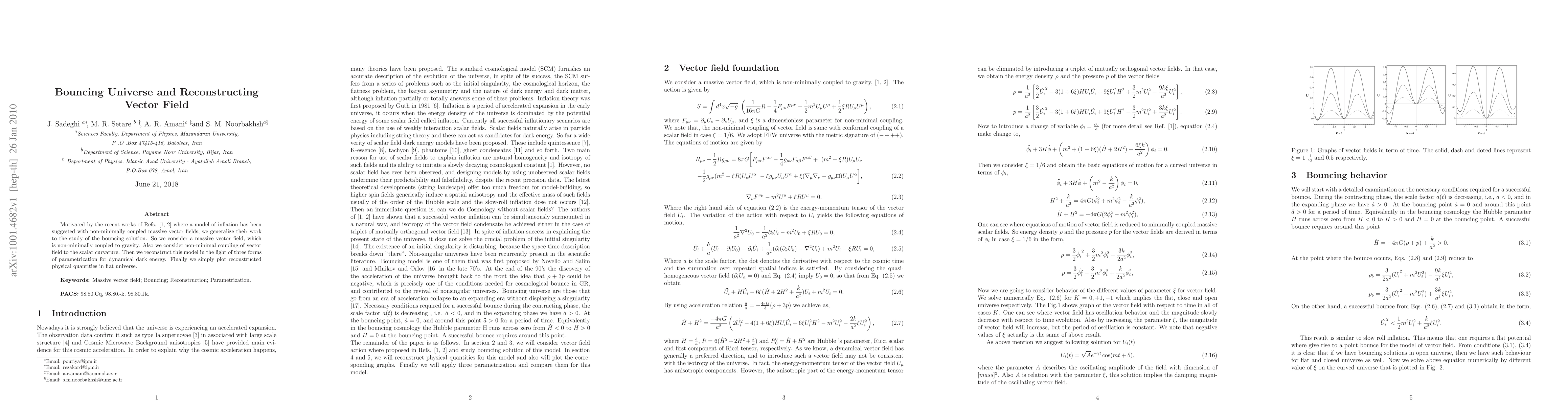 This paper generalizes a model of inflation with non-minimally coupled massive vector fields to explore bouncing solutions, and reconstructs the model using three forms of parametrization for dynamical dark energy, plotting physical quantities in a flat universe.