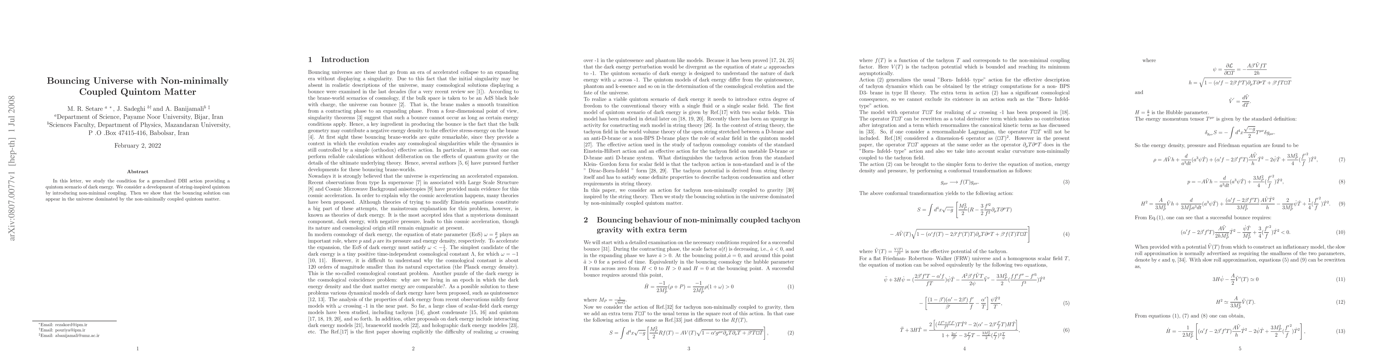 This paper explores a bouncing universe scenario driven by non-minimally coupled quintom matter within a generalized DBI action framework. It demonstrates that such a model can lead to a bouncing solution, indicating a potential alternative to traditional inflationary models.
