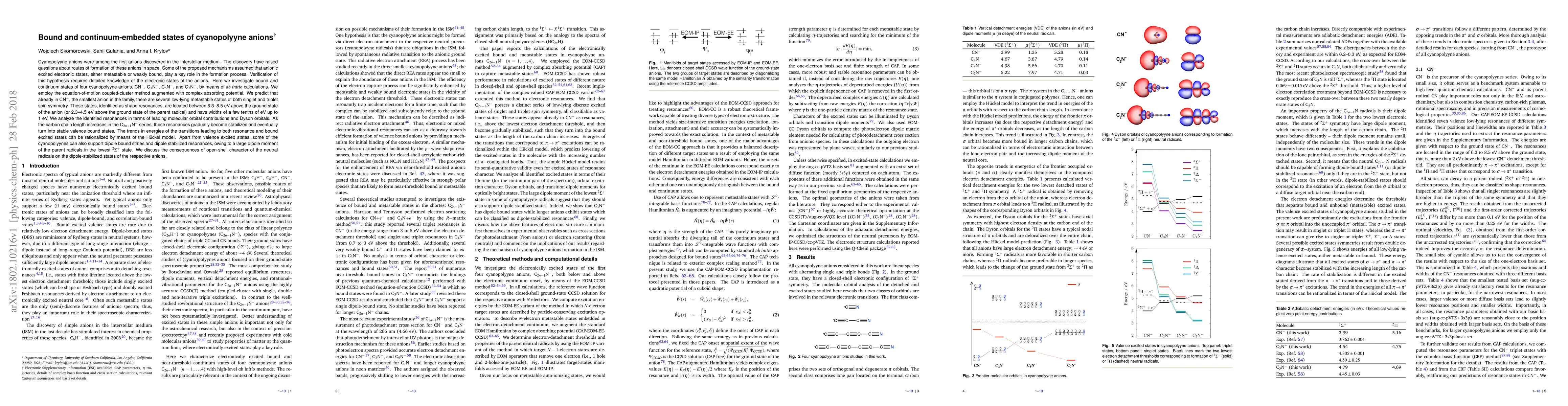Cyanopolyyne anions were among the first anions discovered in the interstellar medium. The discovery have raised questions about routes of formation of these anions in space. Some of the proposed mechanisms assumed that anionic excited electronic states, either metastable or weakly bound, play a key role in the formation process. Verification of this hypothesis requires detailed knowledge of the electronic states of the anions. Here we investigate bound and continuum states of four cyanopolyyne anions, CN$^-$, C$_3$N$^-$, C$_5$N$^-$, and C$_7$N$^-$, by means of ab initio calculations. We employ the equation-of-motion coupled-cluster method augmented with complex absorbing potential. We predict that already in CN$^-$, the smallest anion in the family, there are several low-lying metastable states of both singlet and triplet spin symmetry. These states, identified as shape resonances, are located between 6.3-8.5 eV above the ground state of the anion (or 2.3-4.5 eV above the ground state of the parent radical) and have widths of a few tenths of eV up to 1 eV. We analyze the identified resonances in terms of leading molecular orbital contributions and Dyson orbitals. As the carbon chain length increases in the C$_{2n+1}$N$^-$ series, these resonances gradually become stabilized and eventually turn into stable valence bound states. The trends in energies of the transitions leading to both resonance and bound excited states can be rationalized by means of the H\"{u}ckel model. Apart from valence excited states, some of the cyanopolyynes can also support dipole bound states and dipole stabilized resonances, owing to a large dipole moment of the parent radicals in the lowest $^2\Sigma^+$ state. We discuss the consequences of open-shell character of the neutral radicals on the dipole-stabilized states of the respective anions.