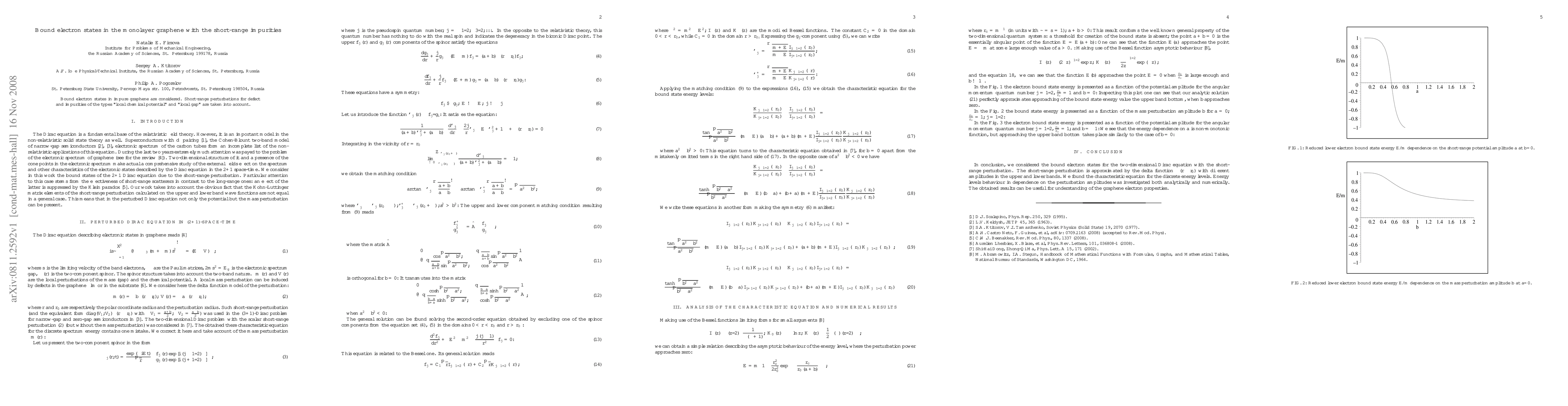 Summary: This paper investigates the impact of short-range impurities on bound electron states in monolayer graphene, considering perturbations from "local chemical potential" and "local gap" defects. The study reveals how these impurities affect the electronic properties of graphene.