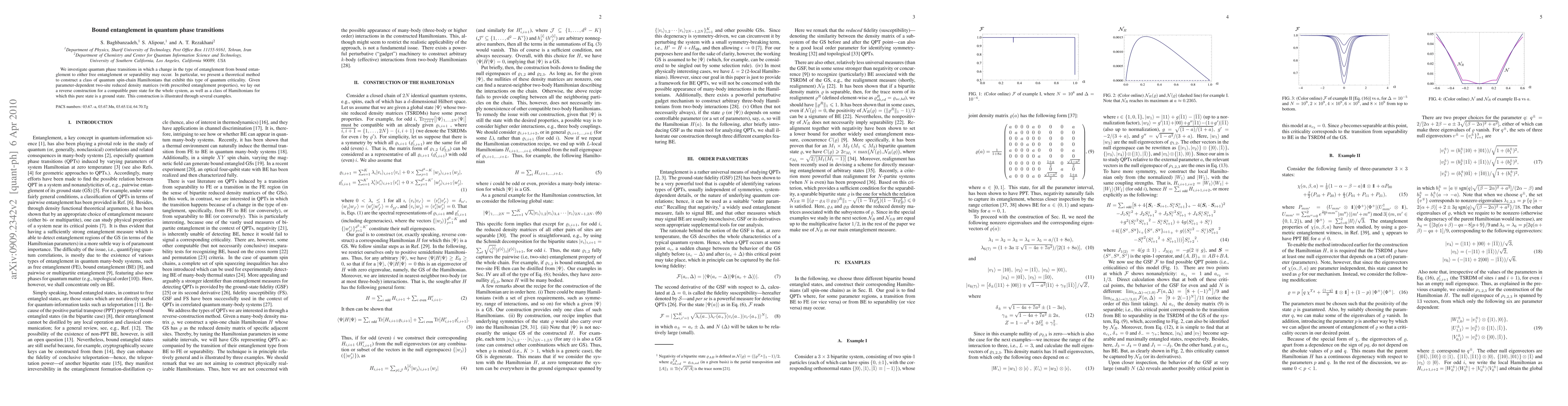 This paper studies quantum phase transitions where entanglement shifts from bound to free or separable states. It introduces a theoretical method to create spin-chain Hamiltonians showcasing this criticality, and details a reverse construction process for compatible pure states and Hamiltonians, illustrated with examples.