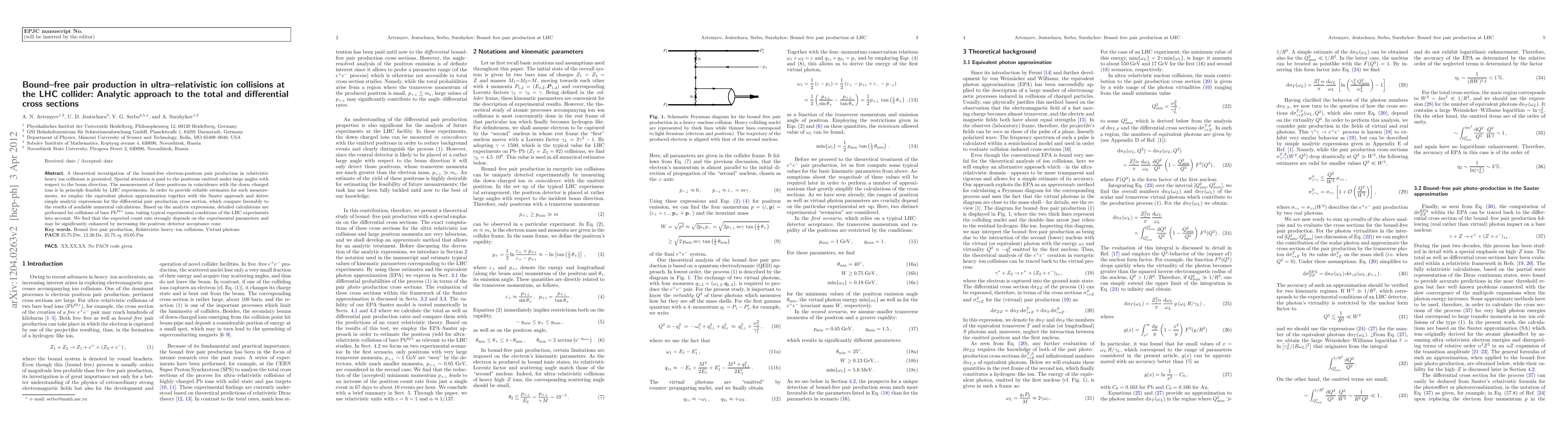 A theoretical investigation of the bound-free electron-positron pair production in relativistic heavy ion collisions is presented. Special attention is paid to the positrons emitted under large angles with respect to the beam direction. The measurement of these positrons in coincidence with the down--charged ions is in principle feasible by LHC experiments. In order to provide reliable estimates for such measurements, we employ the equivalent photon approximation together with the Sauter approach and derive simple analytic expressions for the differential pair--production cross section, which compare favorably to the results of available numerical calculations. Based on the analytic expressions, detailed calculations are performed for collisions of bare Pb$^{82+}$ ions, taking typical experimental conditions of the LHC experiments into account. We find that the expected count rate strongly depends on the experimental parameters and may be significantly enhanced by increasing the positron-detector acceptance cone.