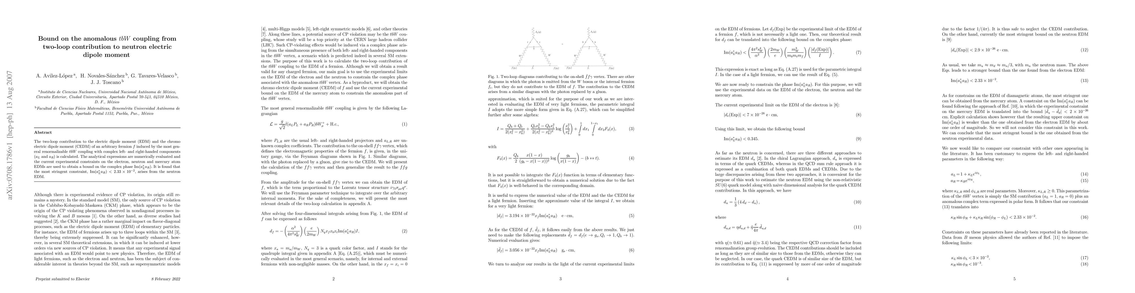 This paper calculates the two-loop contribution to the neutron electric dipole moment (EDM) due to the tbW coupling, deriving analytical expressions for both EDM and chromoelectric dipole moment (CEDM). Using experimental EDM constraints, it finds the most stringent bound on the complex phase Im(a^*_La_R) to be less than 2.33 x 10^{-2}.