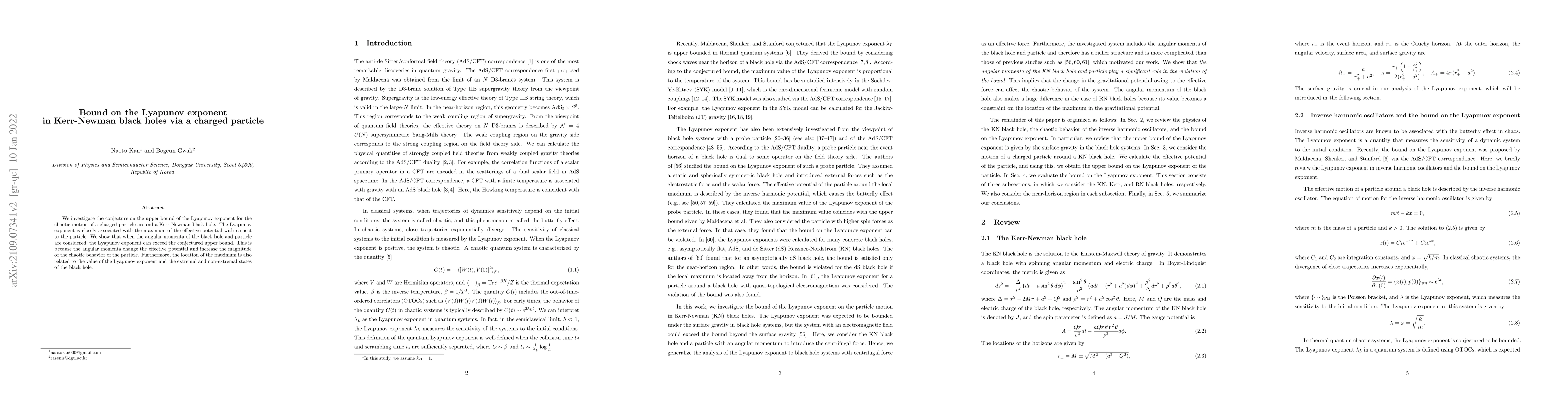 We investigate the conjecture on the upper bound of the Lyapunov exponent for the chaotic motion of a charged particle around a Kerr-Newman black hole. The Lyapunov exponent is closely associated with the maximum of the effective potential with respect to the particle. We show that when the angular momenta of the black hole and particle are considered, the Lyapunov exponent can exceed the conjectured upper bound. This is because the angular momenta change the effective potential and increase the magnitude of the chaotic behavior of the particle. Furthermore, the location of the maximum is also related to the value of the Lyapunov exponent and the extremal and non-extremal states of the black hole.