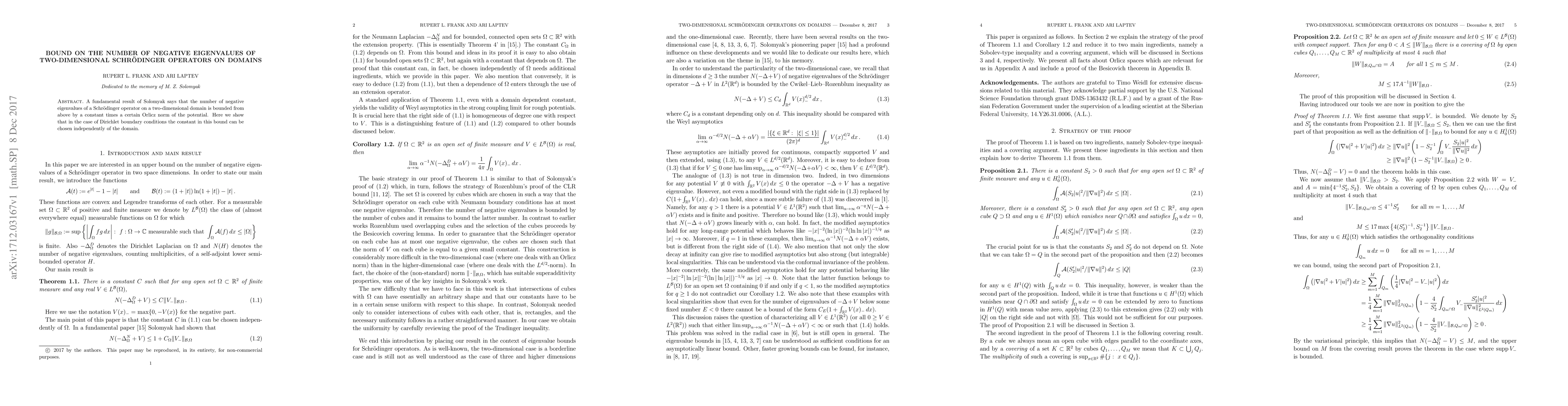 Summary: Solomyak's result on the upper bound of negative eigenvalues for two-dimensional Schrödinger operators is refined to show that the constant in the bound is independent of the domain when Dirichlet boundary conditions are applied.