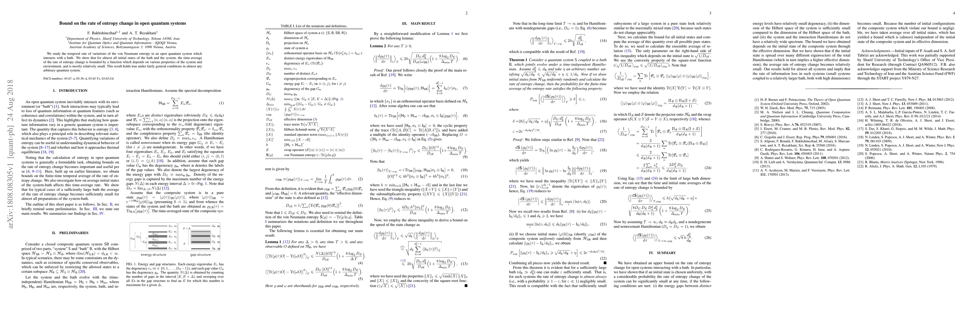 This paper establishes a bound on the time-average rate of entropy change in open quantum systems interacting with a bath, demonstrating that this rate is generally small for almost all initial states under general conditions.