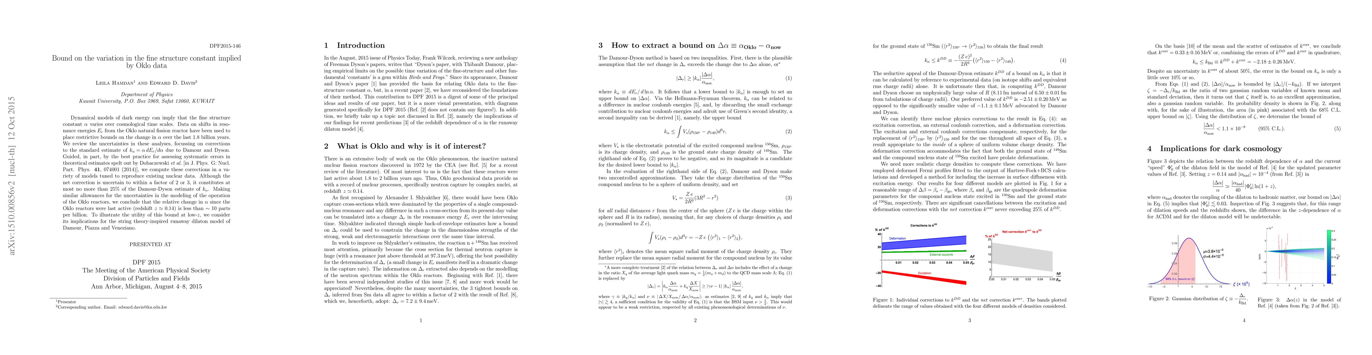 Dynamical models of dark energy can imply that the fine structure constant $\alpha$ varies over cosmological time scales. Data on shifts in resonance energies $E_r$ from the Oklo natural fission reactor have been used to place restrictive bounds on the change in $\alpha$ over the last 1.8 billion years. We review the uncertainties in these analyses, focussing on corrections to the standard estimate of $k_\alpha\!=\!\alpha\,dE_r/d\alpha$ due to Damour and Dyson. Guided, in part, by the best practice for assessing systematic errors in theoretical estimates spelt out by Dobaczewski et al. [in J. Phys. G: Nucl. Part. Phys. 41, 074001 (2014)], we compute these corrections in a variety of models tuned to reproduce existing nuclear data. Although the net correction is uncertain to within a factor of 2 or 3, it constitutes at most no more than 25% of the Damour-Dyson estimate of $k_\alpha$. Making similar allowances for the uncertainties in the modeling of the operation of the Oklo reactors, we conclude that the relative change in $\alpha$ since the Oklo reactors were last active (redshift $z\simeq 0.14$) is less than $\sim 10$ parts per billion. To illustrate the utility of this bound at low-$z$, we consider its implications for the string theory-inspired runaway dilaton model of Damour, Piazza and Veneziano.
