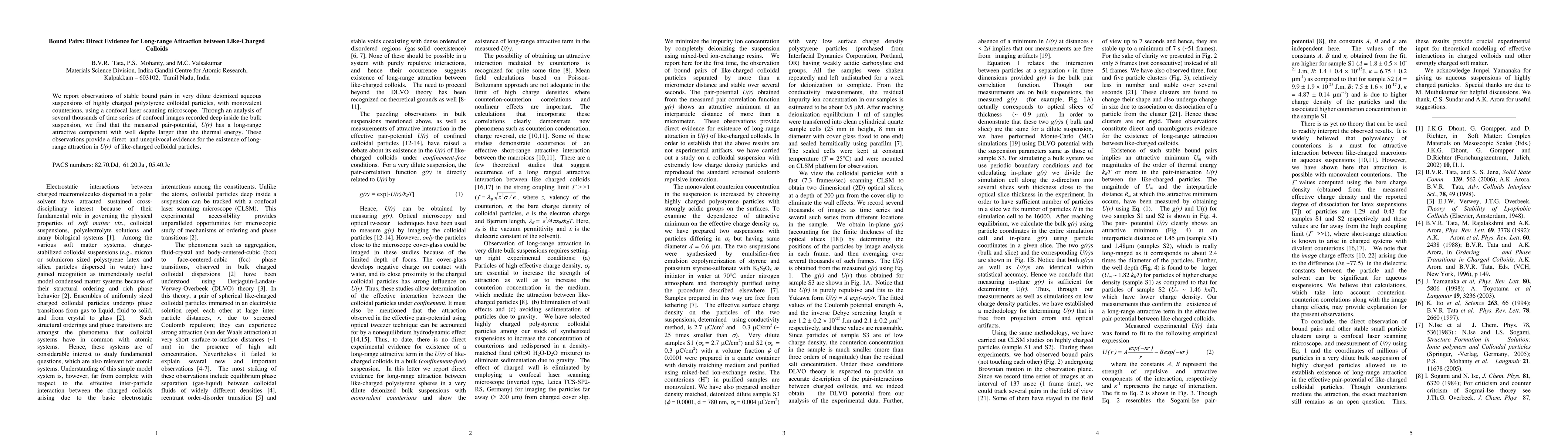 Research reveals stable bound pairs in dilute deionized suspensions of highly charged polystyrene particles, indicating a long-range attractive potential exceeding thermal energy, confirming long-range attraction between like-charged colloids. This discovery is evidenced by analysis of thousands of confocal images.