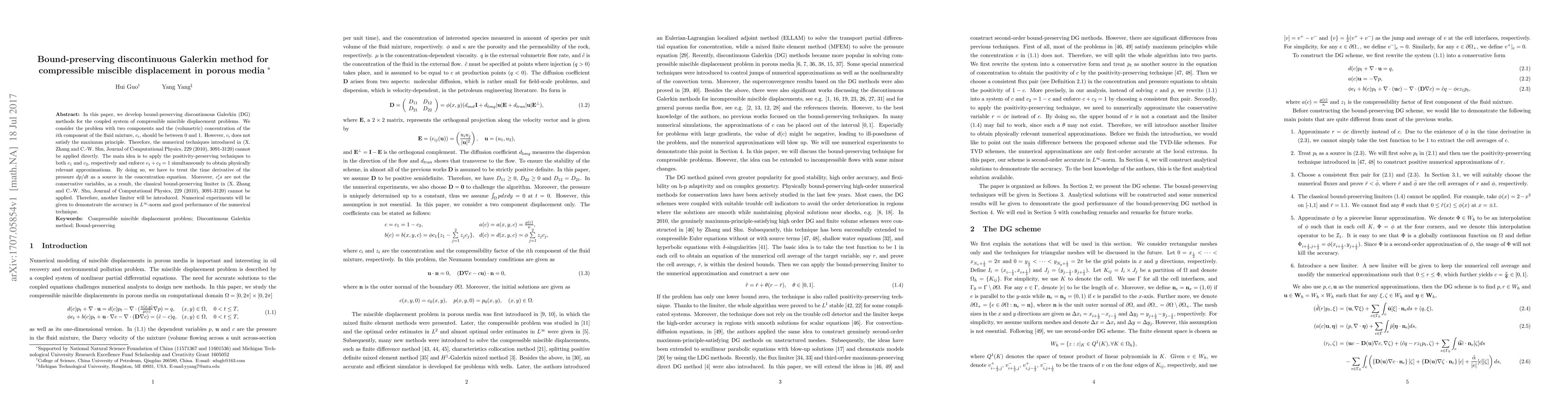 This paper develops a new numerical method for compressible miscible displacement in porous media, addressing the challenge of maintaining concentration bounds while also enforcing physical constraints such as total mixture volume.