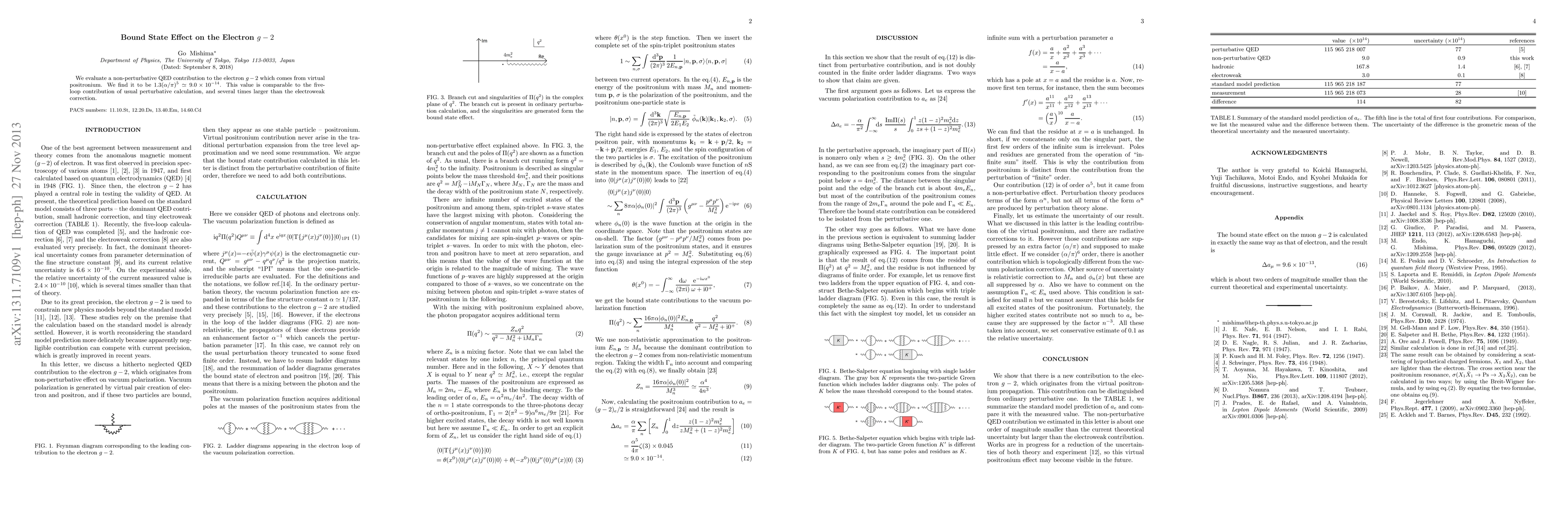 We evaluate a non-perturbative QED contribution to the electron g-2 which comes from virtual positronium. We find it to be 9.0*10^{-14}. This value is comparable to the five-loop contribution of usual perturbative calculation, and several times larger than the electroweak correction.