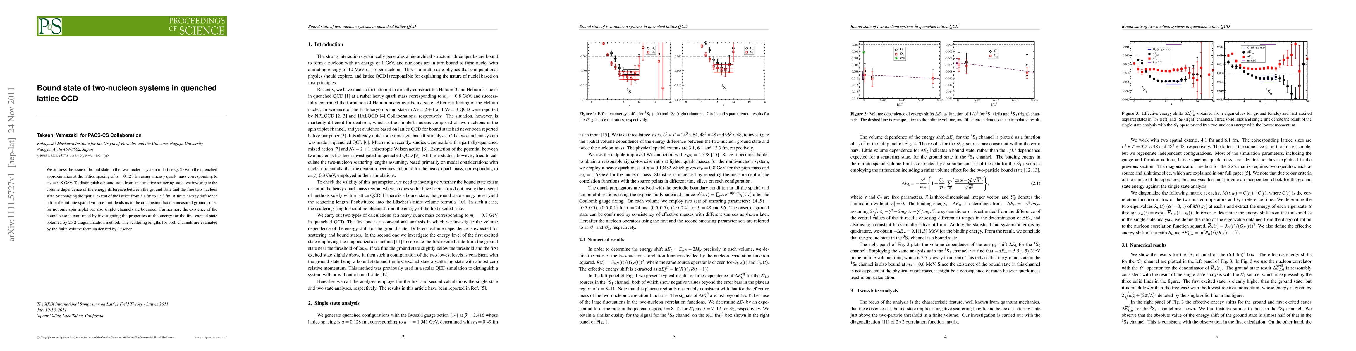 We address the issue of bound state in the two-nucleon system in lattice QCD with the quenched approximation at the lattice spacing of a =0.128 fm using a heavy quark mass corresponding to m_pi = 0.8 GeV. To distinguish a bound state from an attractive scattering state, we investigate the volume dependence of the energy difference between the ground state and the free two-nucleon state by changing the spatial extent of the lattice from 3.1 fm to 12.3 fm. A finite energy difference left in the infinite spatial volume limit leads us to the conclusion that the measured ground states for not only spin triplet but also singlet channels are bounded. Furthermore the existence of the bound state is confirmed by investigating the properties of the energy for the first excited state obtained by 2x2 diagonalization method. The scattering lengths for both channels are evaluated by the finite volume formula derived by Luscher.