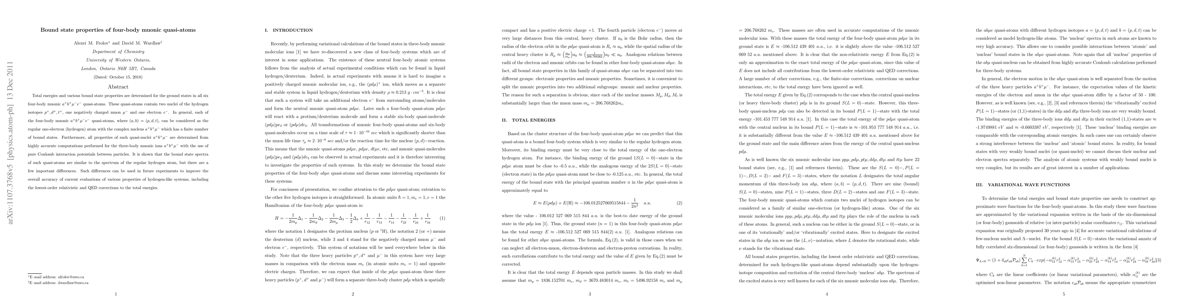 This paper determines the total energies and bound state properties for ground states of six four-body muonic quasi-atoms composed of two hydrogen isotopes, one muon, and one electron. It reveals similarities and differences in their spectra compared to regular hydrogen atoms, which could enhance future experimental evaluations of hydrogen-like systems' properties.