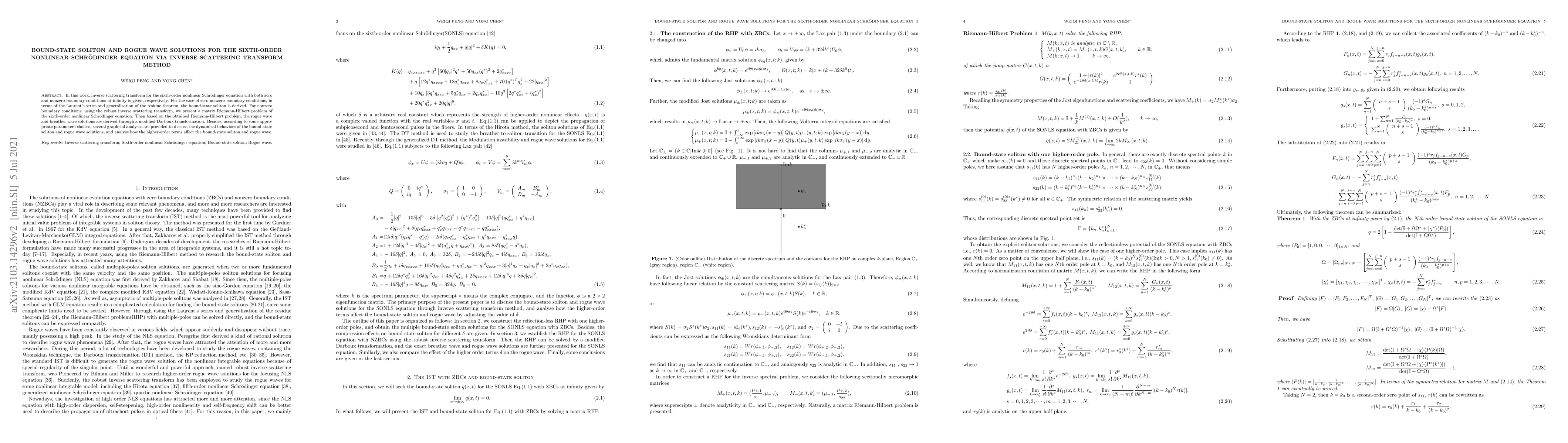 This paper uses the inverse scattering transform method to derive bound-state soliton and rogue wave solutions for a sixth-order nonlinear Schrödinger equation under different boundary conditions. It presents analytical solutions and analyzes the effects of higher-order terms on these wave behaviors through graphical illustrations.