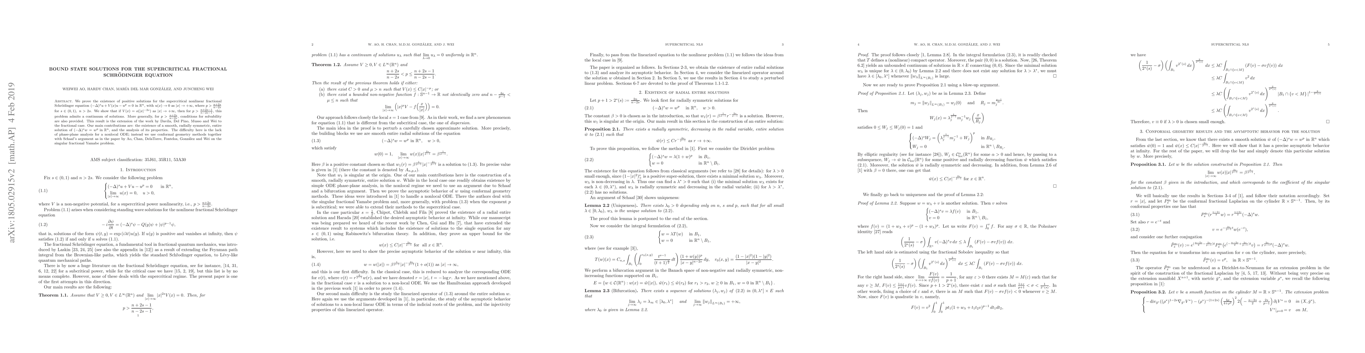 Researchers prove the existence of positive solutions to a nonlinear fractional Schrödinger equation with specific conditions on the exponent p and potential V(x), leading to a continuum of solutions for certain parameters.