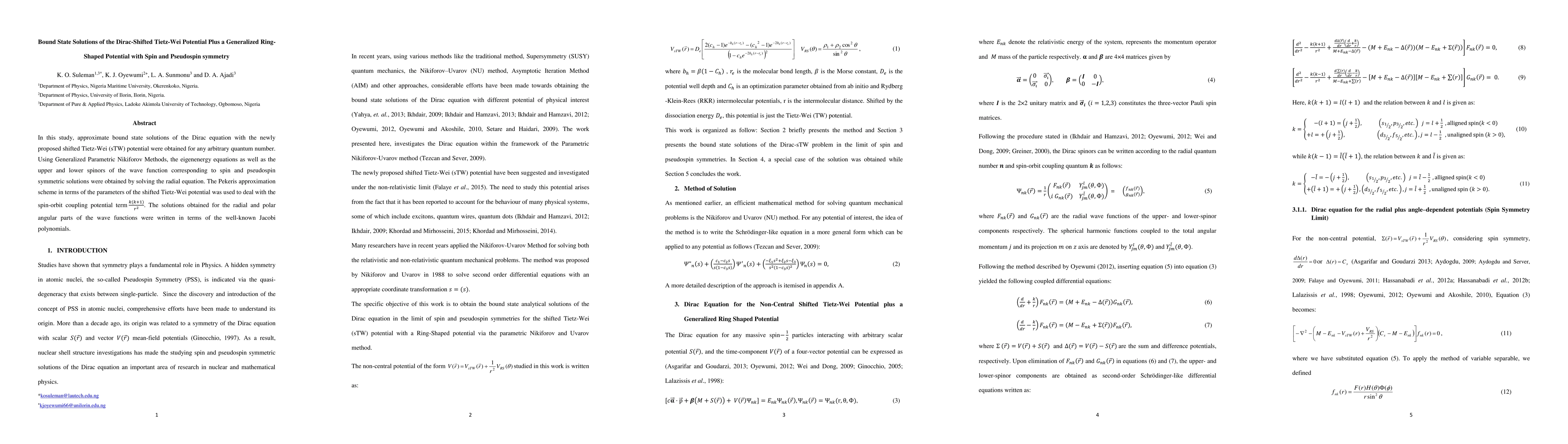 This study uses a new potential to solve the Dirac equation for arbitrary quantum numbers, providing solutions that take into account spin and pseudospin symmetry.