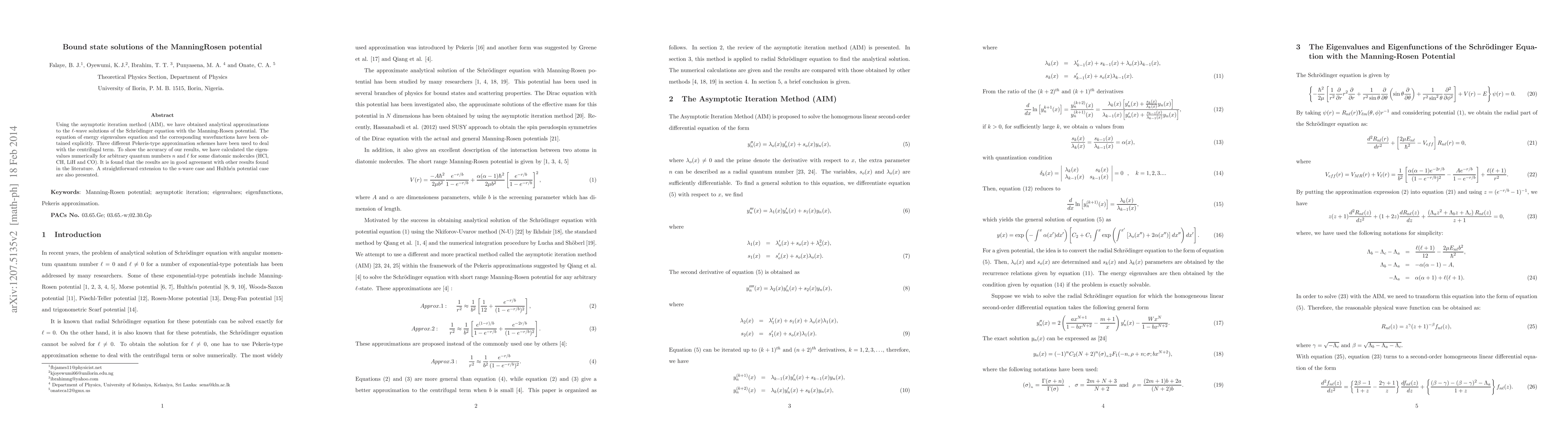 This paper uses the asymptotic iteration method to derive analytical solutions for the $\ell$-wave states under the Manning-Rosen potential, obtaining energy eigenvalues and wavefunctions. The results are verified against numerical calculations for several diatomic molecules, showing good agreement with existing literature.